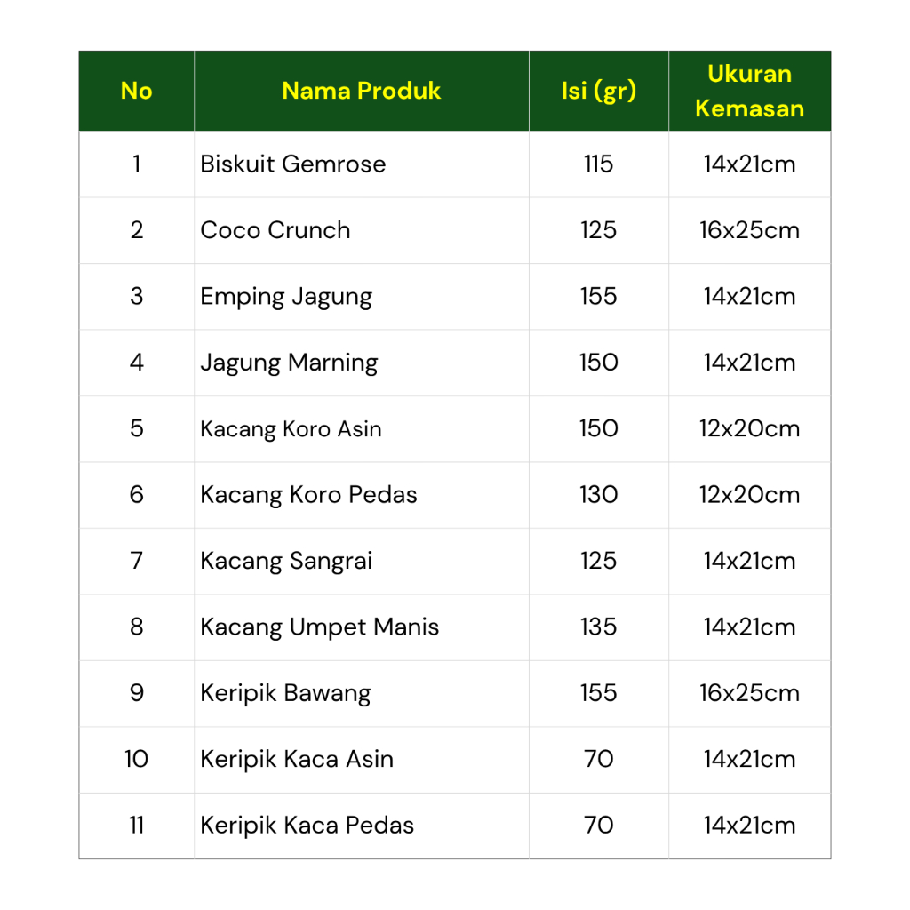 Utk ukuran kemasan berbeda-beda sesuai dengan berat/gramnya.