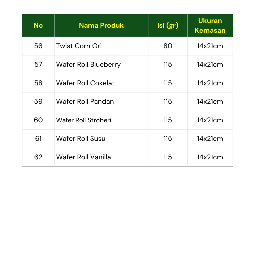 59 Wafer Roll Pandan 115gr - Ukuran: 14x21cm