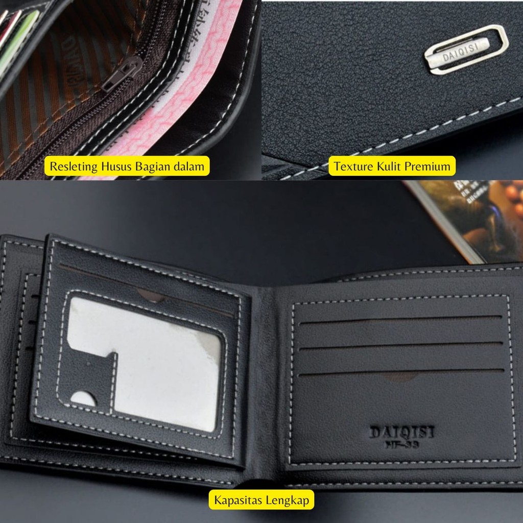 DOMPET LIPAT PRIA KULIT ORIGINAL PREMIUM DAIQISI DOYLE KECIL PENDEK SLOT KARTU UANG TIPIS COWOK KEREN MURAH BATAM BRANDED SIMPLE