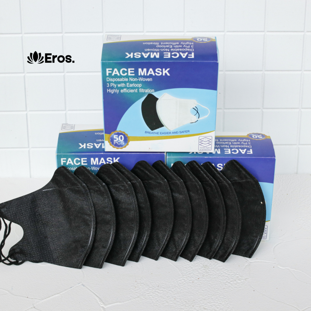 Masker Duckbill 50 Pcs 3 Ply Hitam & Putih / Masker Duckbil