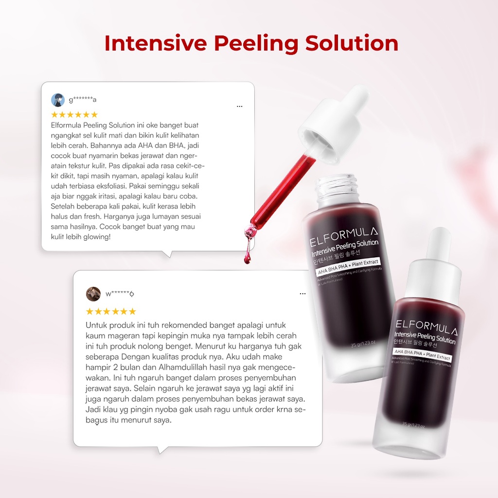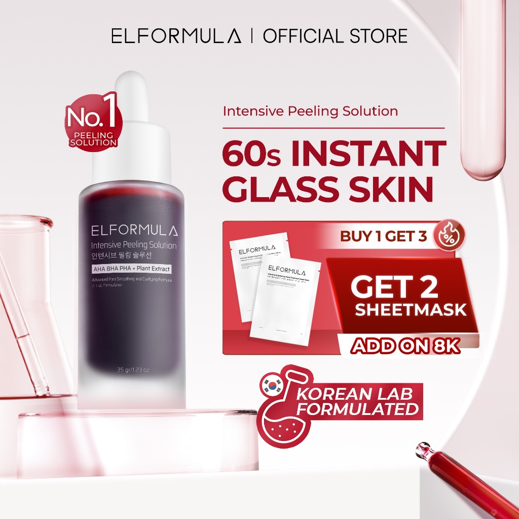 ELFORMULA Intensive Peeling Solution – Peeling Serum Dark Spot Glass Skin Eksfoliasi Wajah Mengangkat Sel Kulit Mati AHA BHA PHA Glowing Smooth Skin Mencerahkan Kulit Halus Blackhead Brightening Whitening Exfoliasi Exfoliating