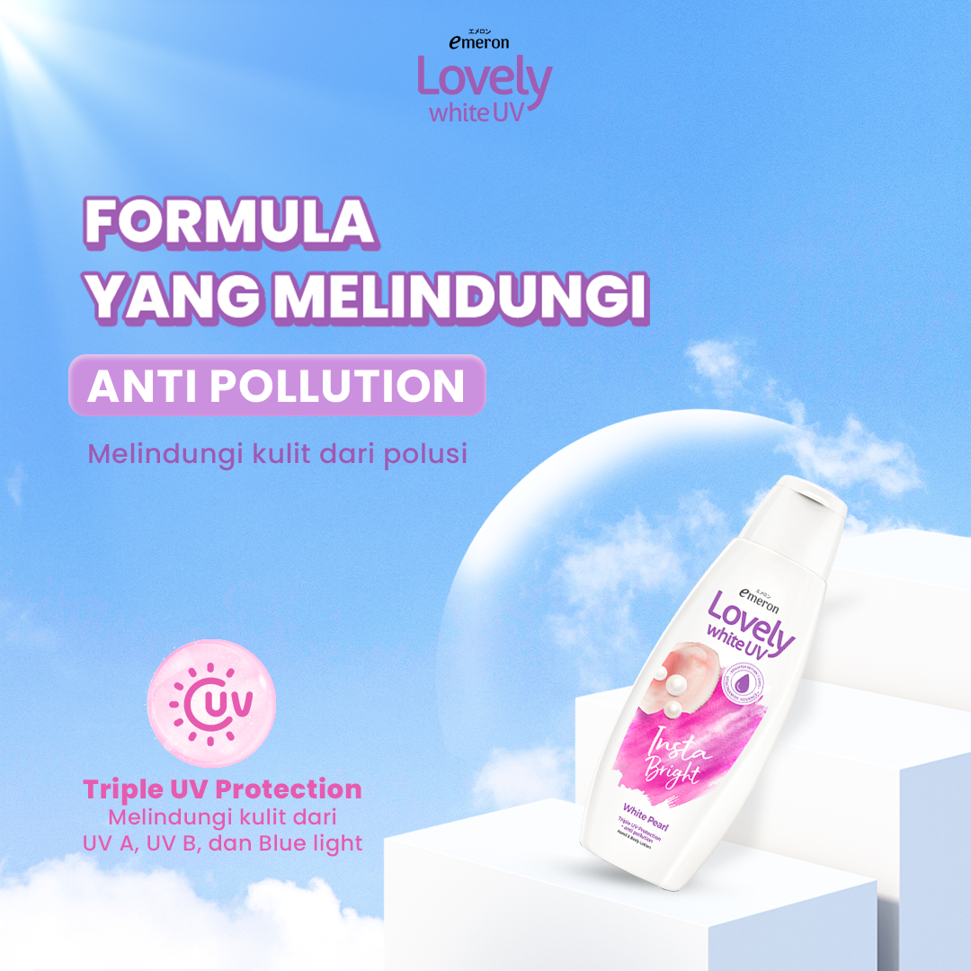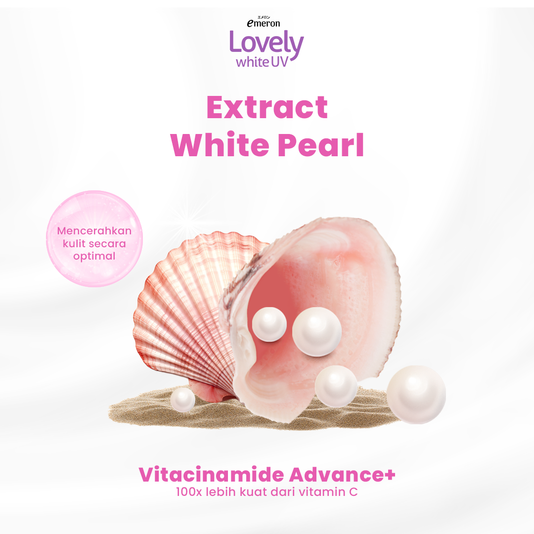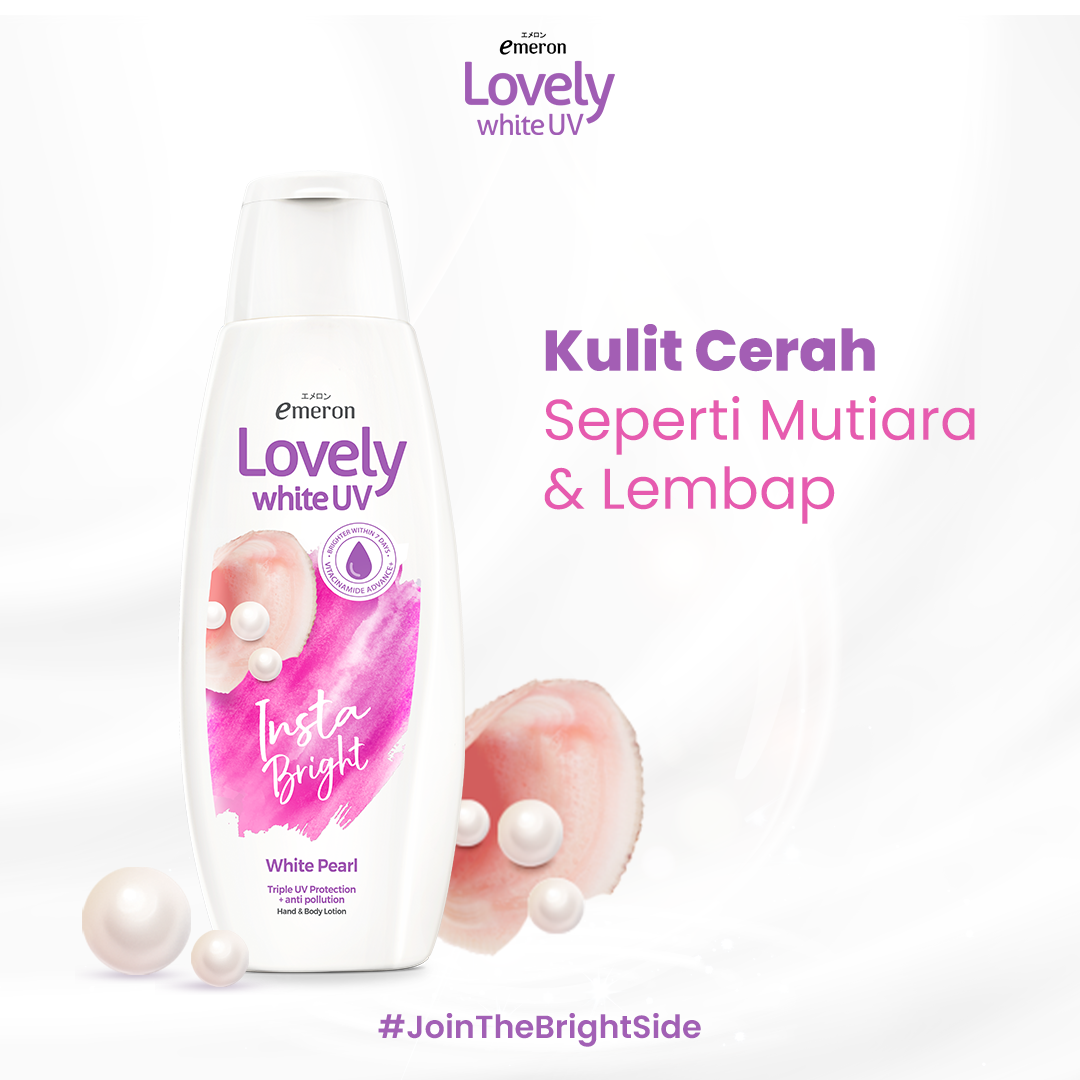 Emeron Lovely White UV Insta Bright mengandung Vitacinamide Advance dengan kekuatan 100x Vitamin C teruji klinis dapat menjadikan kulit tampak lebih cerah mulai dari 2 minggu. Ekstrak White Pearl kaya akan mineral dan asam amino membuat kulit tampak cerah berkilau bagai mutiara dan senantiasa terasa lembap. UVA/UVB Protection melindungi kulit dari paparan sinar matahari yang dapat membuat kulit menjadi kusam. Long lasting perfume mempertahankan wangi elegan di kulitmu selama beraktivitas.