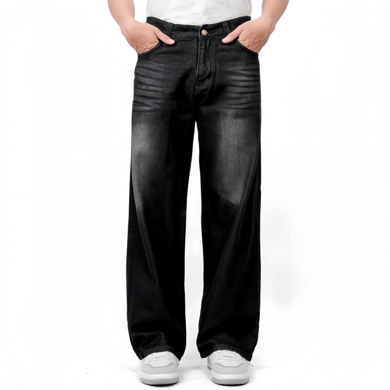 Ethena – Celana Jeans Wisker Pria Unisex Wide Leg Lebar Gombrong Skena Blacki