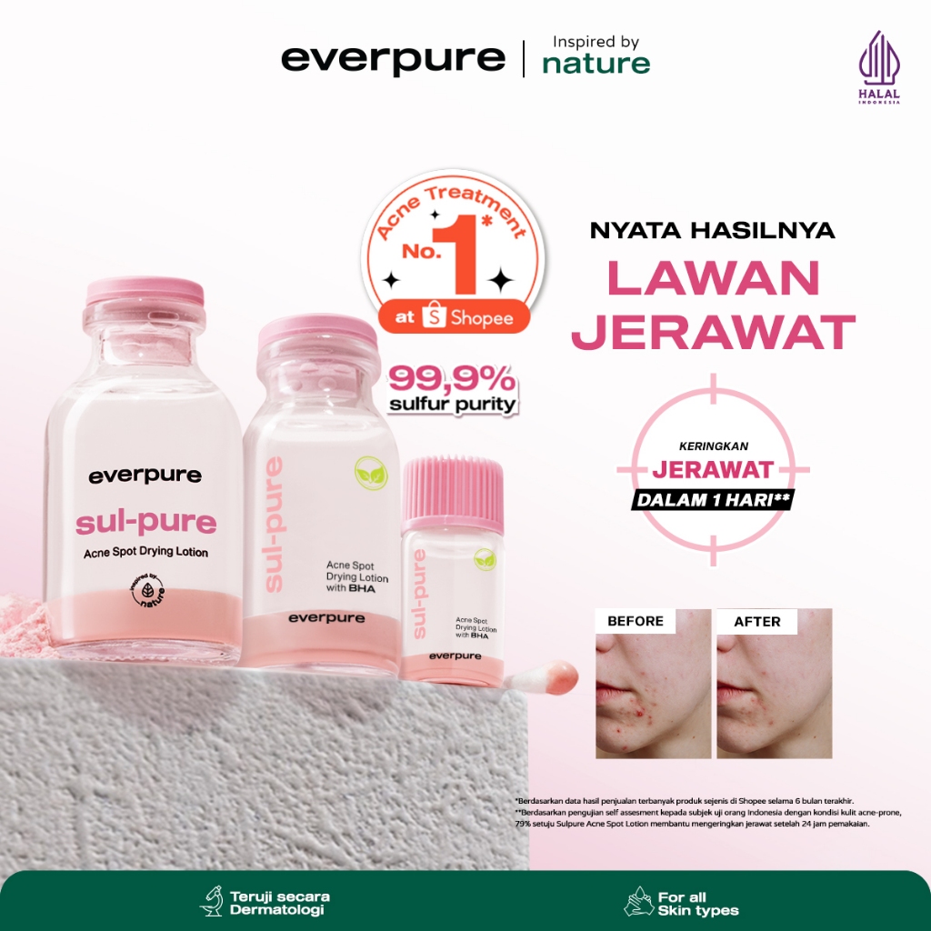 EVERPURE Sul-pure Acne Spot Drying Lotion – Obat Totol Mengeringkan Jerawat Dalam 1 Hari Dengan Sulfur & BHA [BPOM] 3ml, 10ml, 20ml
