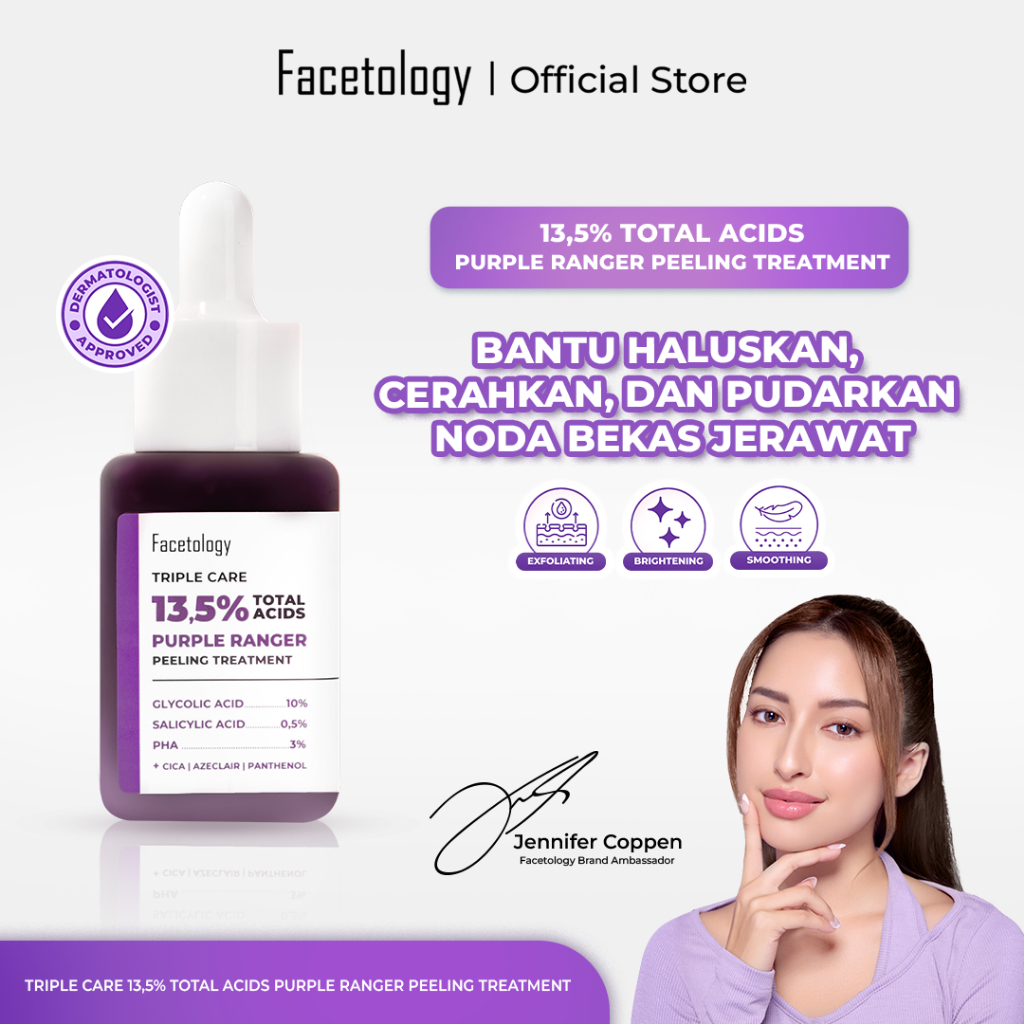 Beranda » Produk » FACETOLOGY Triple Care 13.5% Total Acids Purple Ranger Peeling Treatment Serum mengandung glycolic sebagai exfoliating bantu bersihkan wajah dan komedo