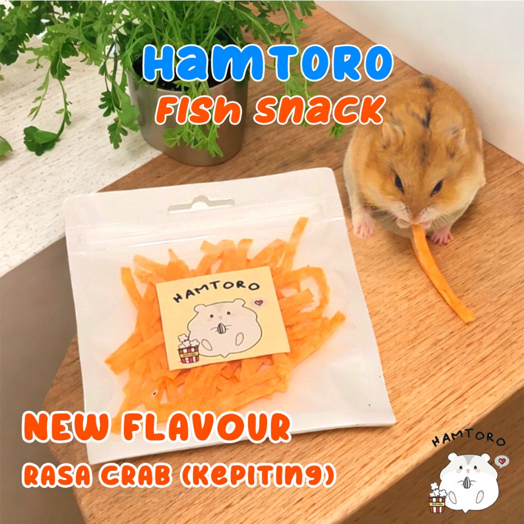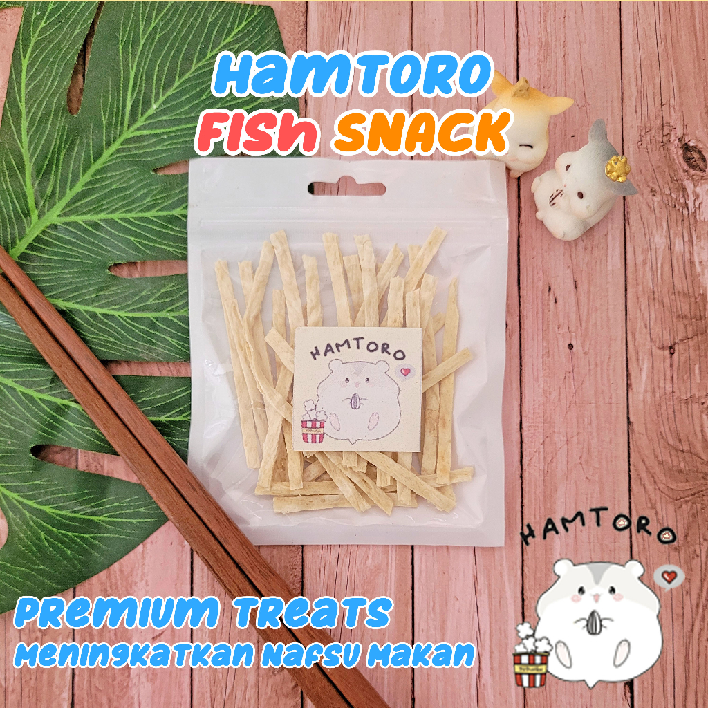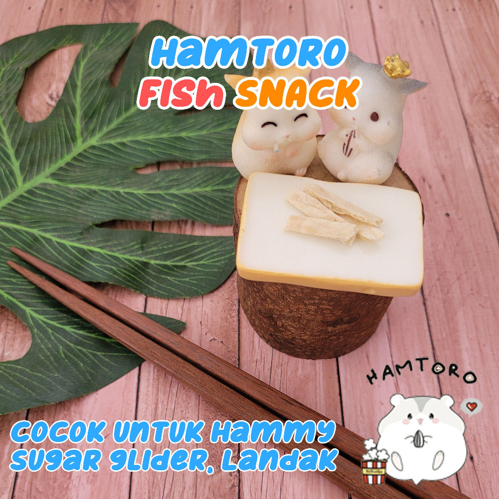 Fish snack ini merupakan snack favorit Hamster dan Sugar glider. Ini dikarenakan fish snack terbuat dari ikan fresh serta bahan lainnya. Bau Fish snack yang unik juga akan memikat hamster dan sugar glider. Fish snack ini dibuat tanpa rasa(tawar) sehingga 100% aman untuk Hammy kesayanganmu.