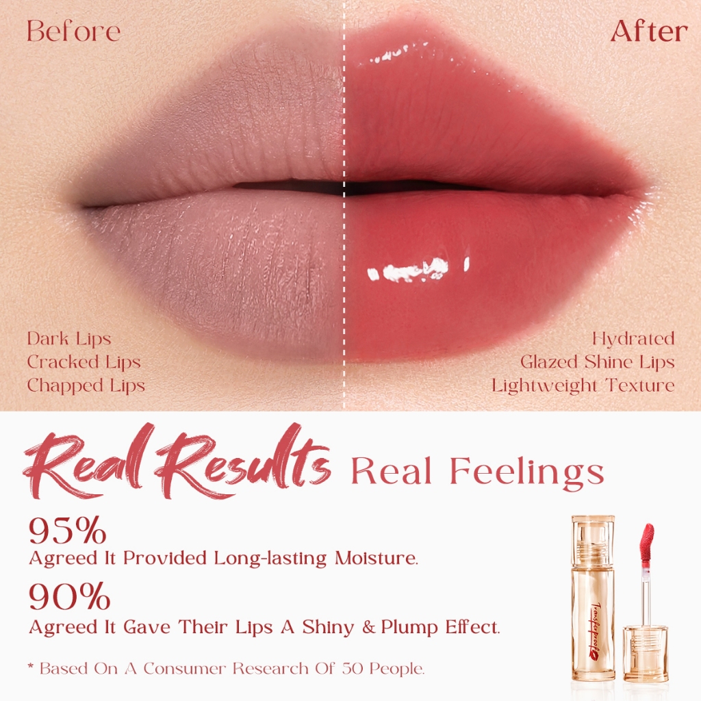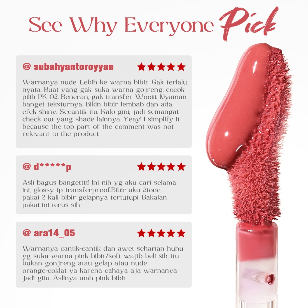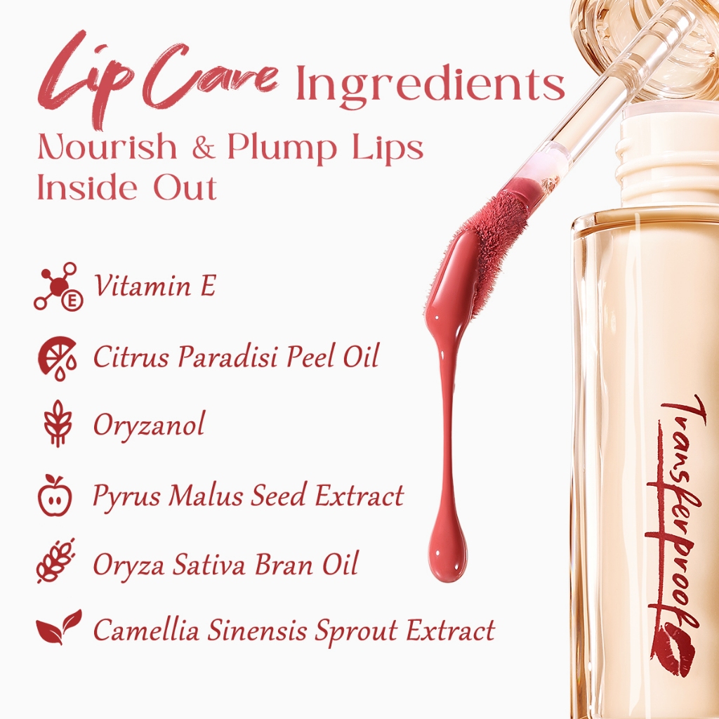 *Semakin lama, efek gloss pada bibir akan semakin bagus, menawarkan efek transferproof yang tahan lama dan sempurna.