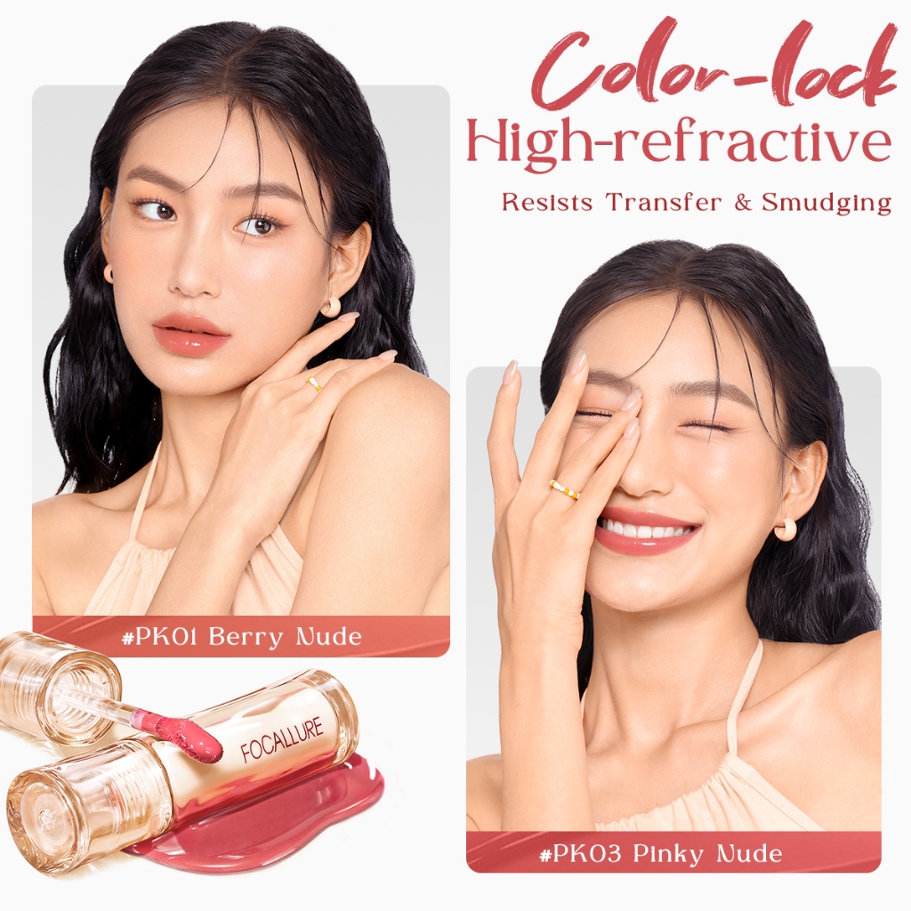 FOCALLURE Lip Tint Super Glazed Shine 16H Moisturizing Lightweight Lip Glossy