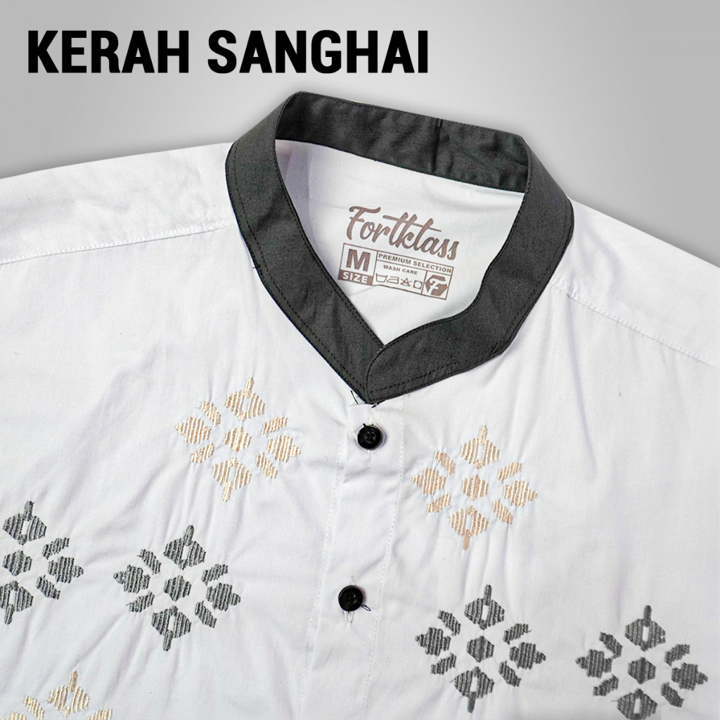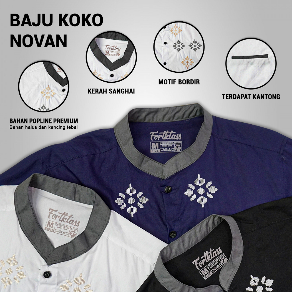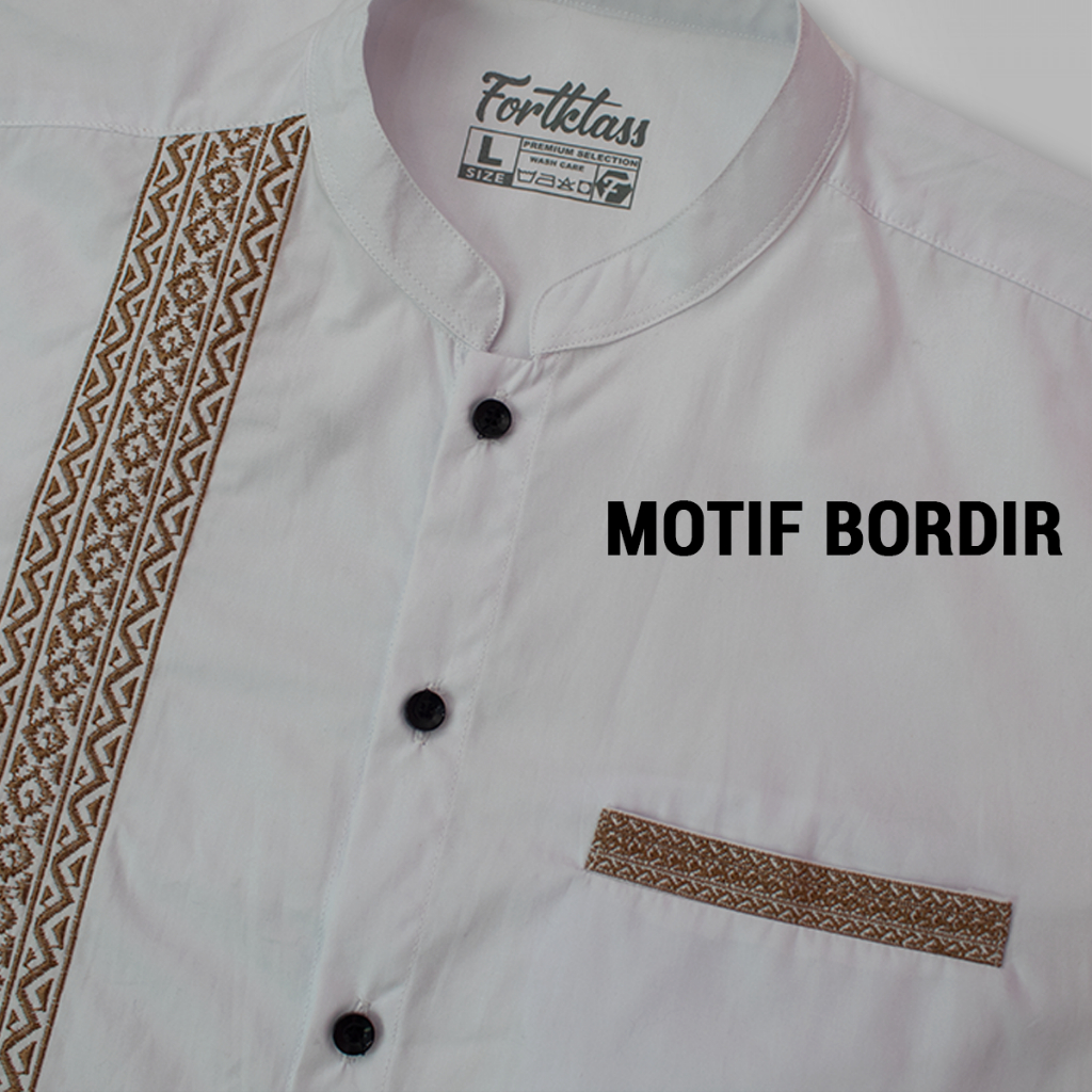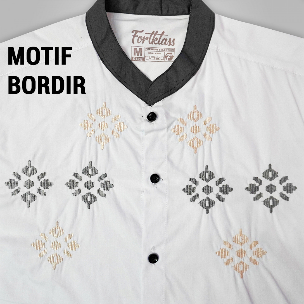 FortKlass ALAM Baju Koko Bordir Kemeja Polos Pria Lengan Pendek Regular Fit Pakaian Muslim