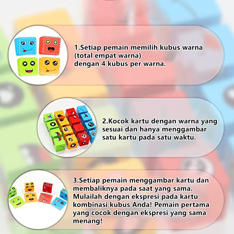 ◆ PERMAINAN SOSIAL YANG BAIK ---- Set mainan ini dilengkapi dengan 16 balok kayu ekspresif dan 72 kartu wajah yang menantang. Ini kecil dan mudah dibawa. Anak-anak dapat bermain dengan keluarga dan teman sekelas sekolahnya. Permainan ini meningkatkan keterampilan interpersonal anak dan memperdalam persahabatan antar anak.