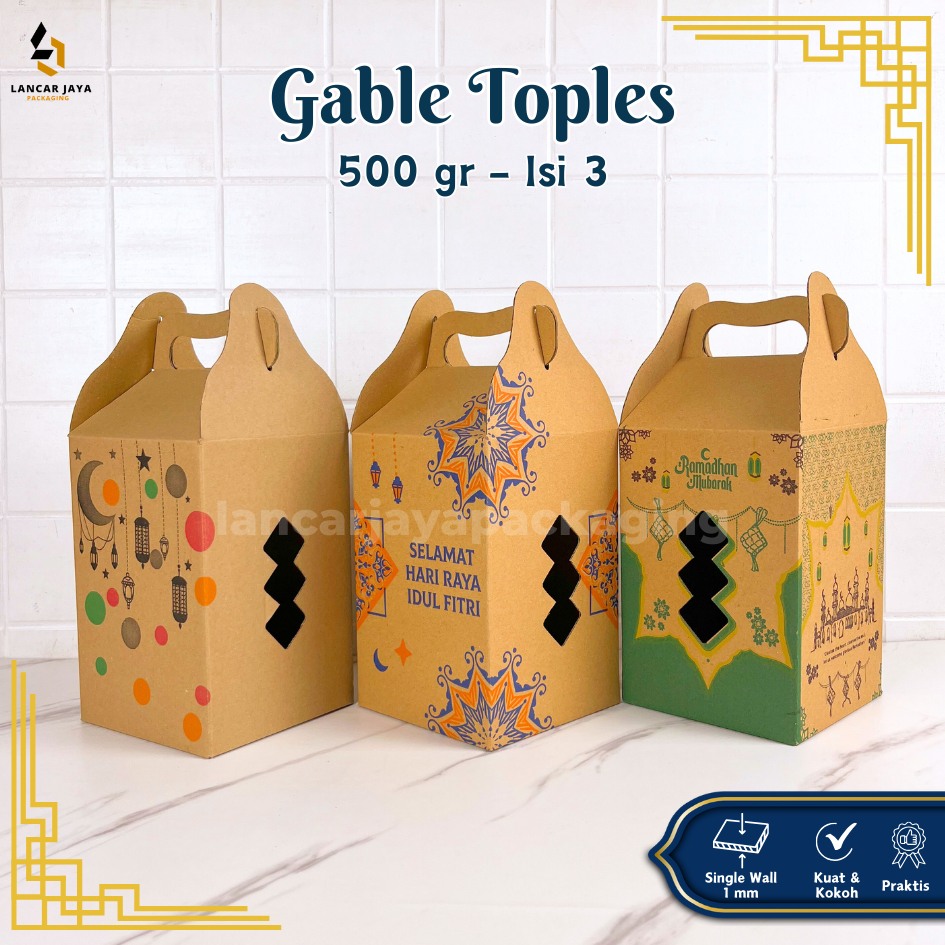 Gable Box E-Flute 14x14x21 Kotak Jinjing Toples Isi 3 500gr Dus Kue Kering Hampers