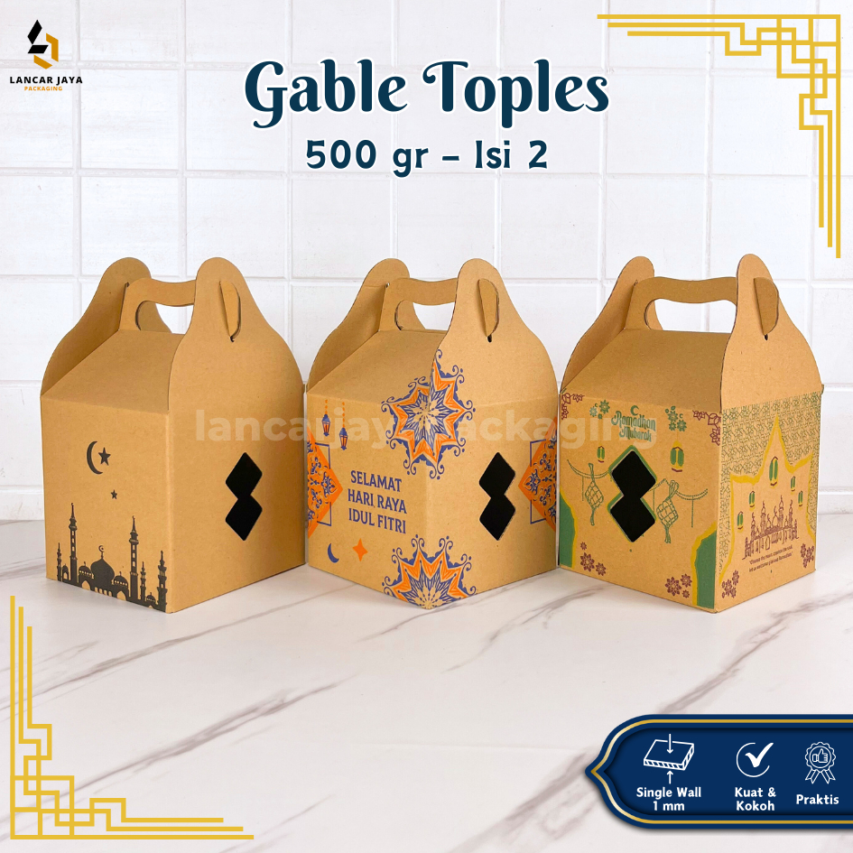 Gable Box Jinjing 14x14x14 Dus Toples Isi 2 500gr Kotak Hampers Kue Kering Lebaran Natal Imlek