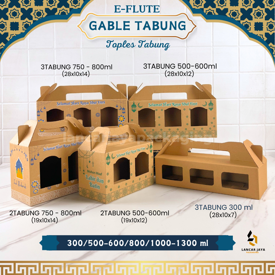Gable Box Jinjing Toples Tabung 300 500 600 750 800 1000 1300 ml Dus Hampers Lebaran Idul Fitri