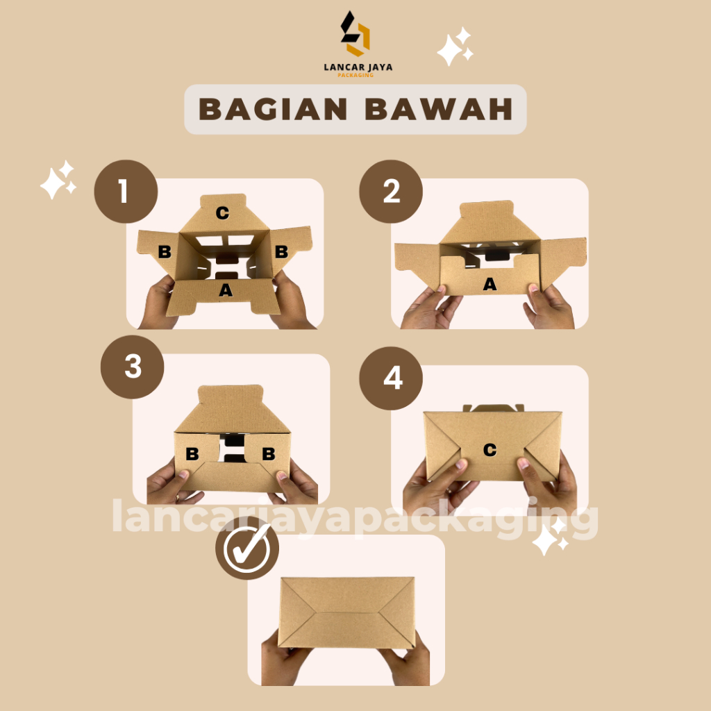 Gable Box berbahan E-flute sangat mudah untuk dirakit tanpa menggunakan solasi/lem. Bahan dus tebal didesain khusus untuk box toples kue yang mampu menahan beban berat