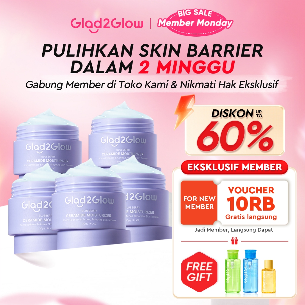 Glad2Glow Blueberry 5% Ceramide Moisturizer Repair Barrier Pulihkan skincare day cream Night Cream krim wajah moisturizer cream repair cream torriden cream cream pemutih wajah skincare bpom Pelembab Wajah Sensitive Skin Care G2G glad2glow official store