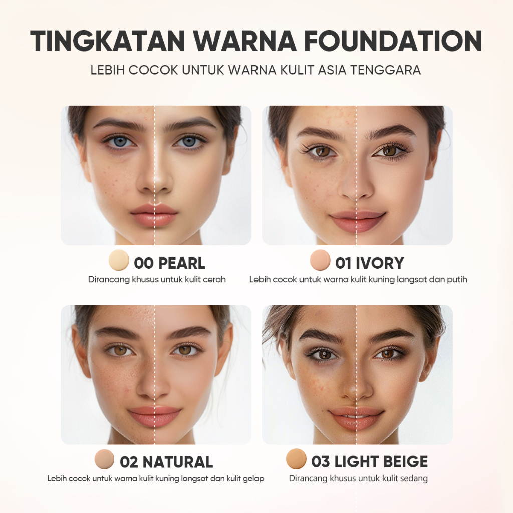 Gunakan 01 Ivory untuk kulit putih dan 02 Natural untuk kulit natural.