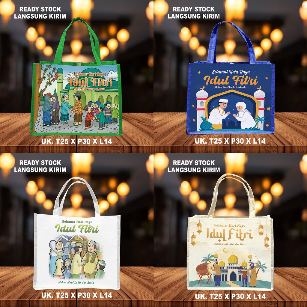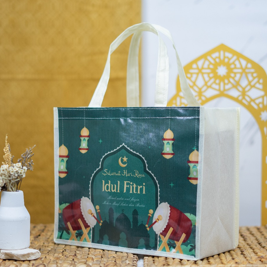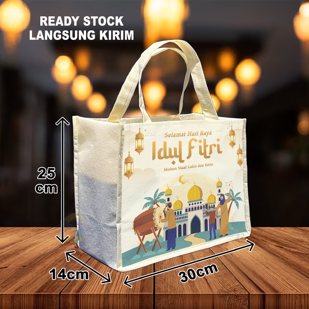 Goodie Bag Idul Fitri uk 25x30x14 / Spunbond Lebaran Ecer / Tas Handle Idul Fitri Harga Satuan