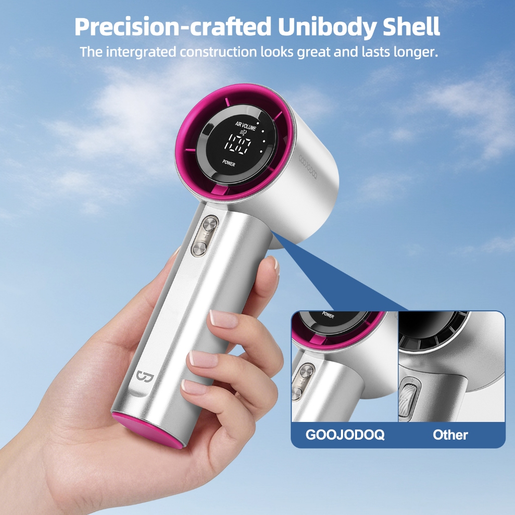 Diadopsi dengan motor turbo brushless yang efisien dengan kecepatan putar 16000rpb, kipas genggam senyap kelas atas kami menghasilkan lebih sedikit kebisingan di bawah 25db tetapi menciptakan udara badai yang kuat dengan kecepatan cepat paling banyak 9m/s dan jarak pendinginan yang lebih jauh. Maksimal 5 meter hingga 3X lebih cepat mendinginkan Anda di musim panas. Turbofan melepaskan aliran udara terkompresi dan terkonsentrasi yang tersaring sedingin udara dari udara AC.