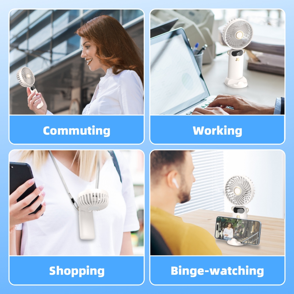 Hal ini dapat digunakan sebagai kipas desktop, atau dapat dipegang tangan. Di rumah, kantor, ruang ber-ac, menonton olahraga, olahraga fisik, tempat duduk di belakang mobil, di luar rumah, berkemah, bepergian, dan tempat mana pun yang sejuk udaranya dibutuhkan.