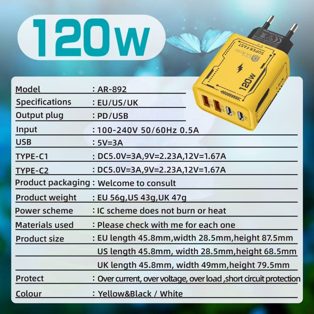 GUKOO Charger 40W fast charging equipped with 4 interfaces dual usb dual TYPE C original