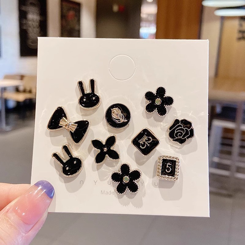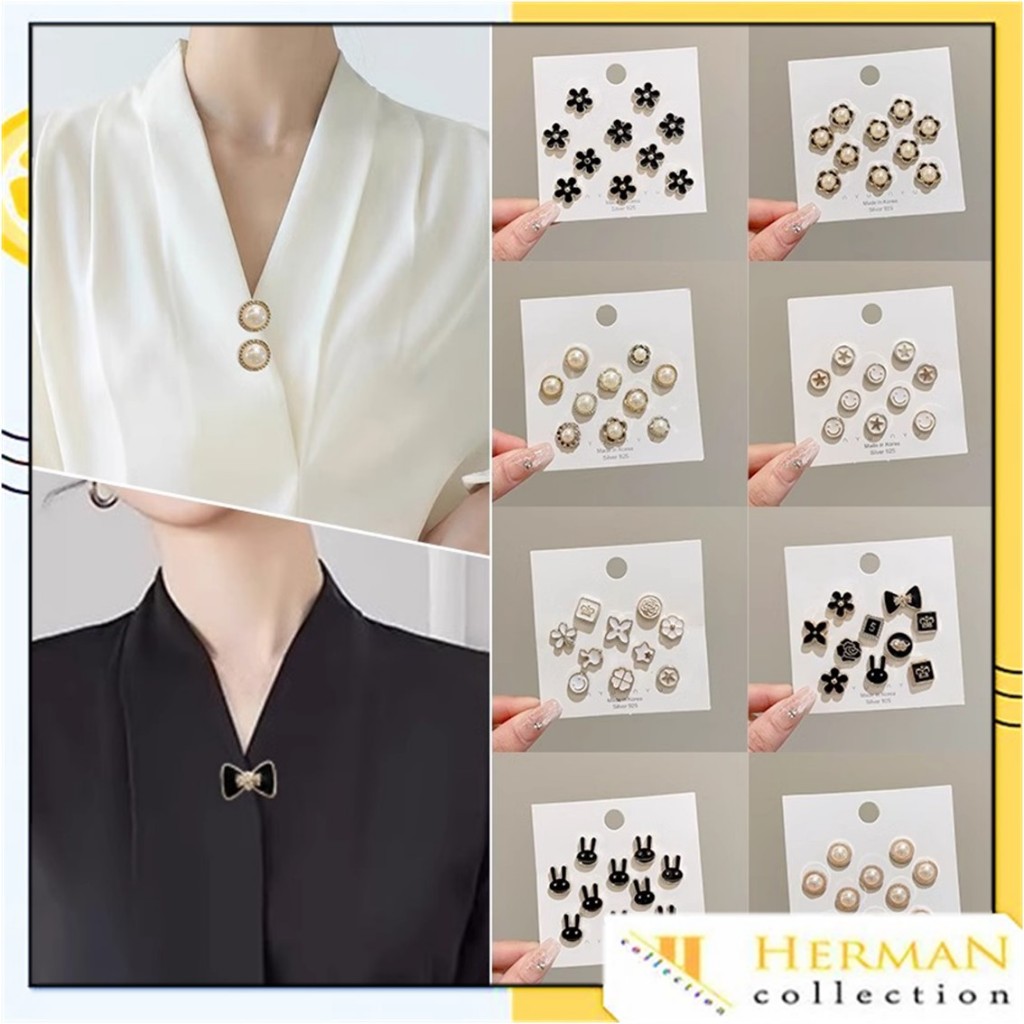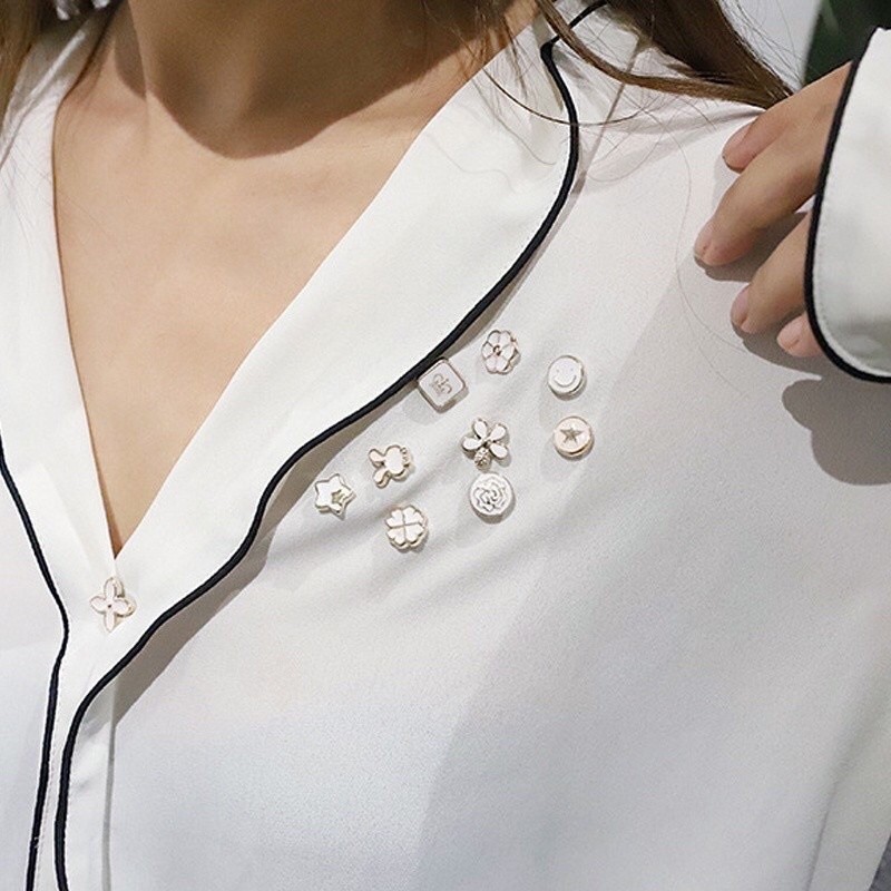 HC Set Bros Pin 10 In 1 Motif Bunga Bintang Kelinci Aneka Desain Accidental Pin Kancing 10pcs Pakaian Wanita,Aksesoris Fashion Korea Model Invisible Kancing Dapat Dilepas