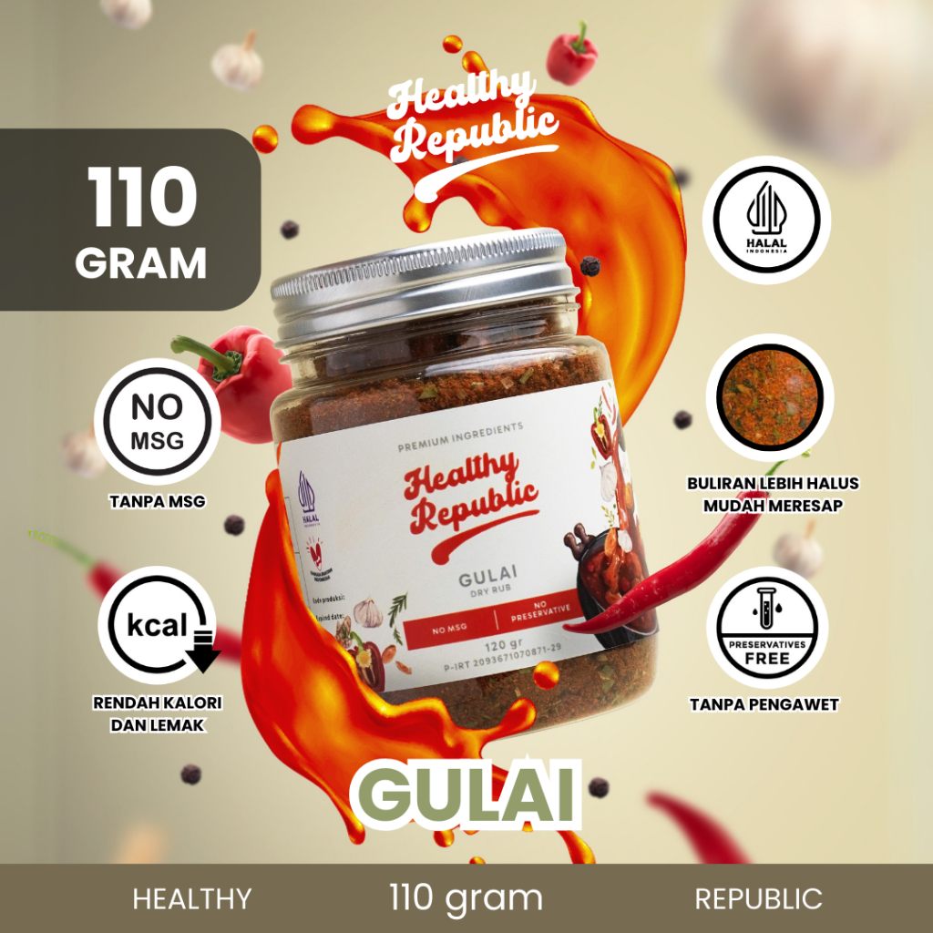 Terbuat dari perpaduan paprika, bawang putih, bawang bombay, rempah seperti lada hitam, aromatic herbs dan bumbu rahasia Healthy Republic. *SANGAT COCOK untuk SEAFOOD tapi bisa juga untuk ayam, sapi , dll