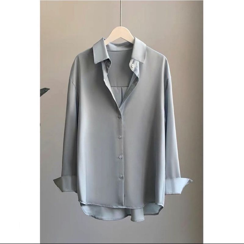 HemClo Kemeja Polos Wanita Ukuran S M L XL XXL XXXL XXXXL 4XL 2XL 3XL 5XL 2L 3L 4L 5L Kemeja Basic Kemeja Kerja Big Size Atasan Oversize Baju Kantor Blouse Korea Ootd