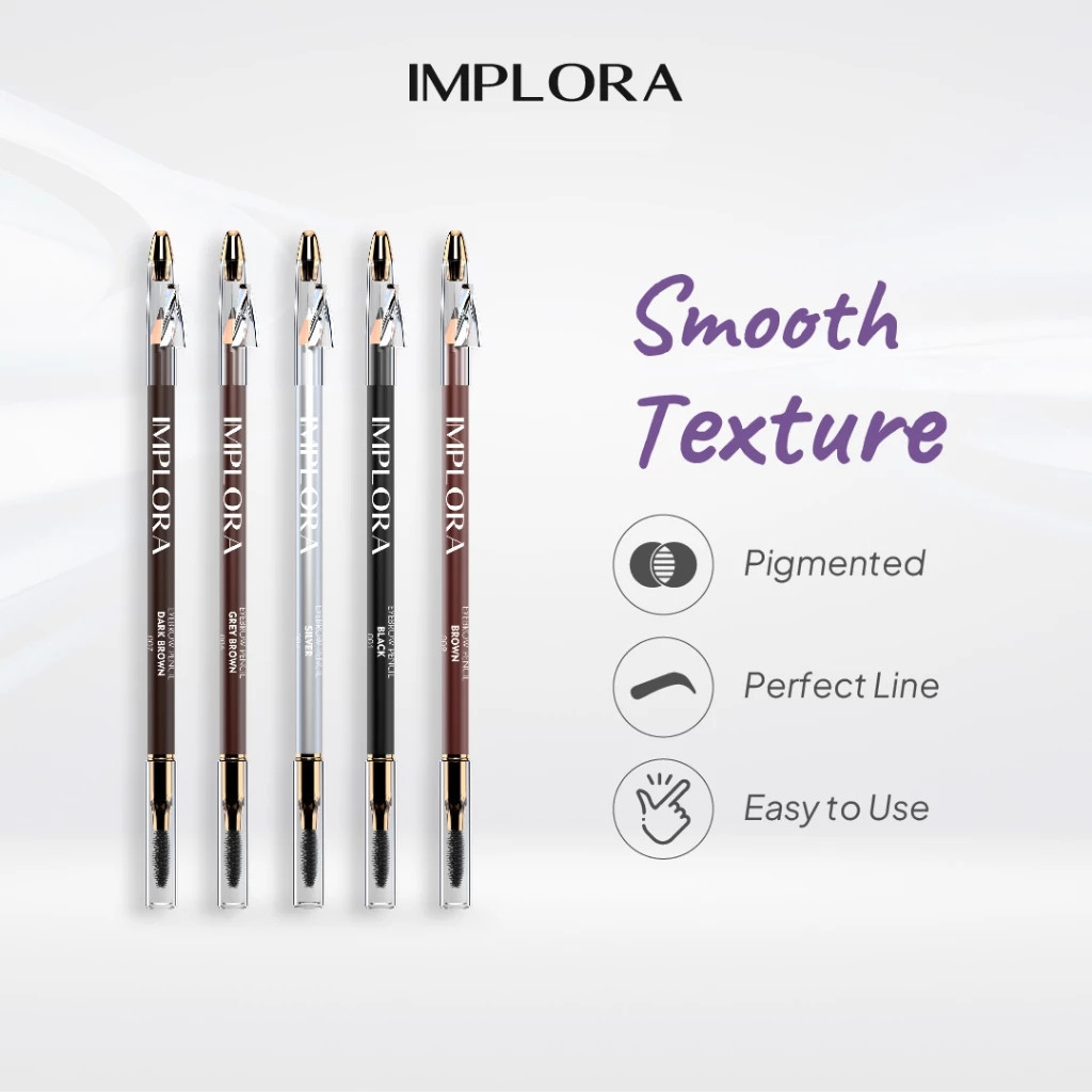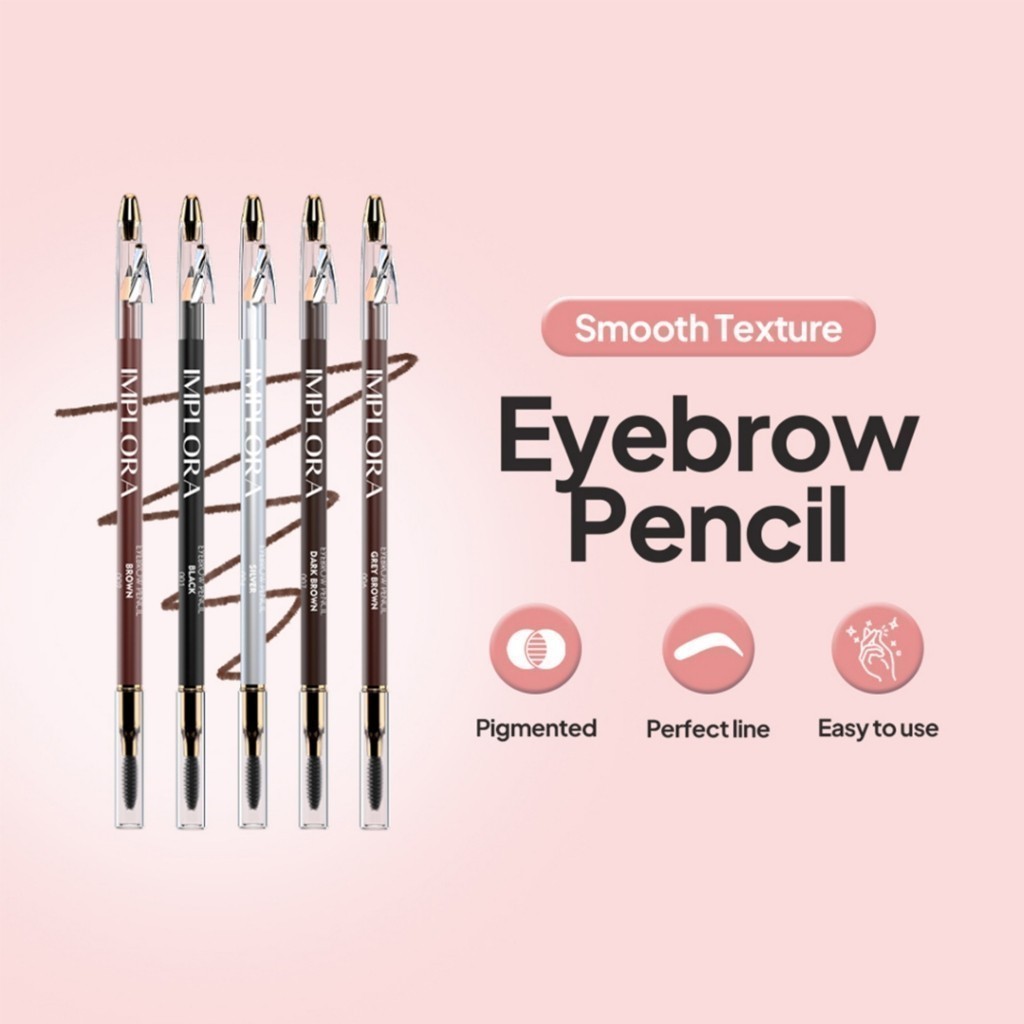 IMPLORA Eye Brow Pencil 2 IN 1 Long Lasting – Pensil Alis ( PENSIL + SERUTAN + SIKAT ) | TnT Beauty Shop