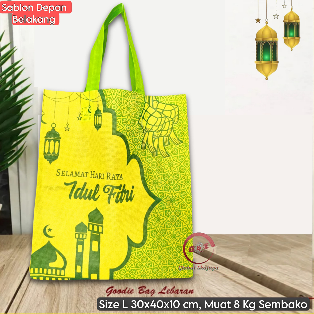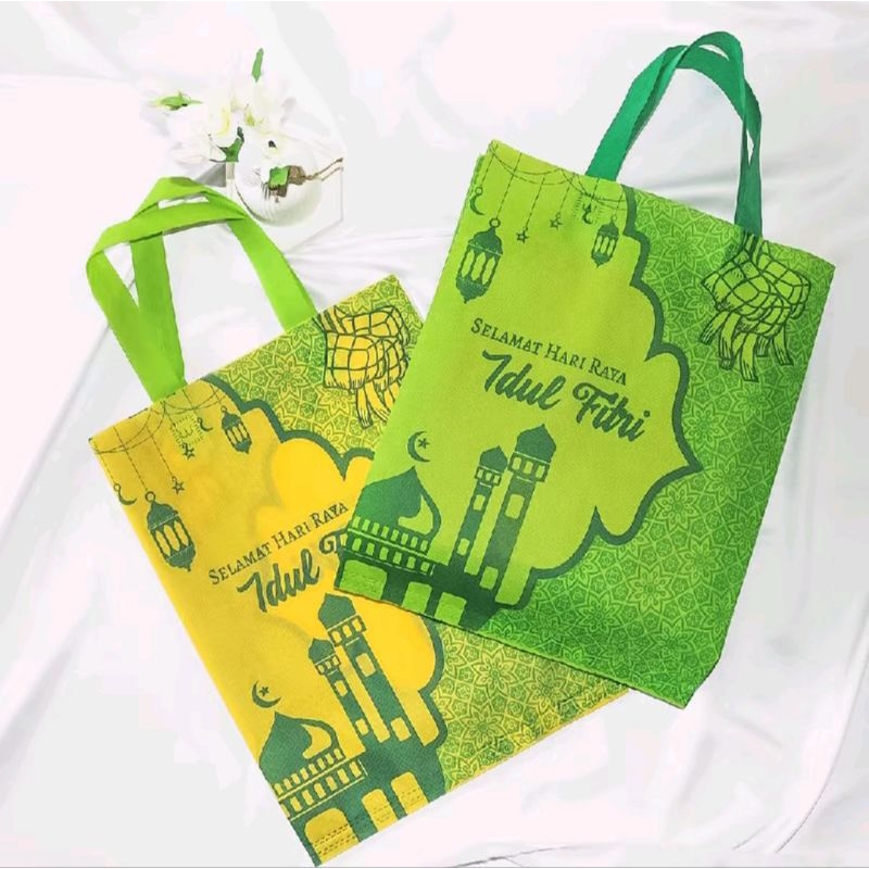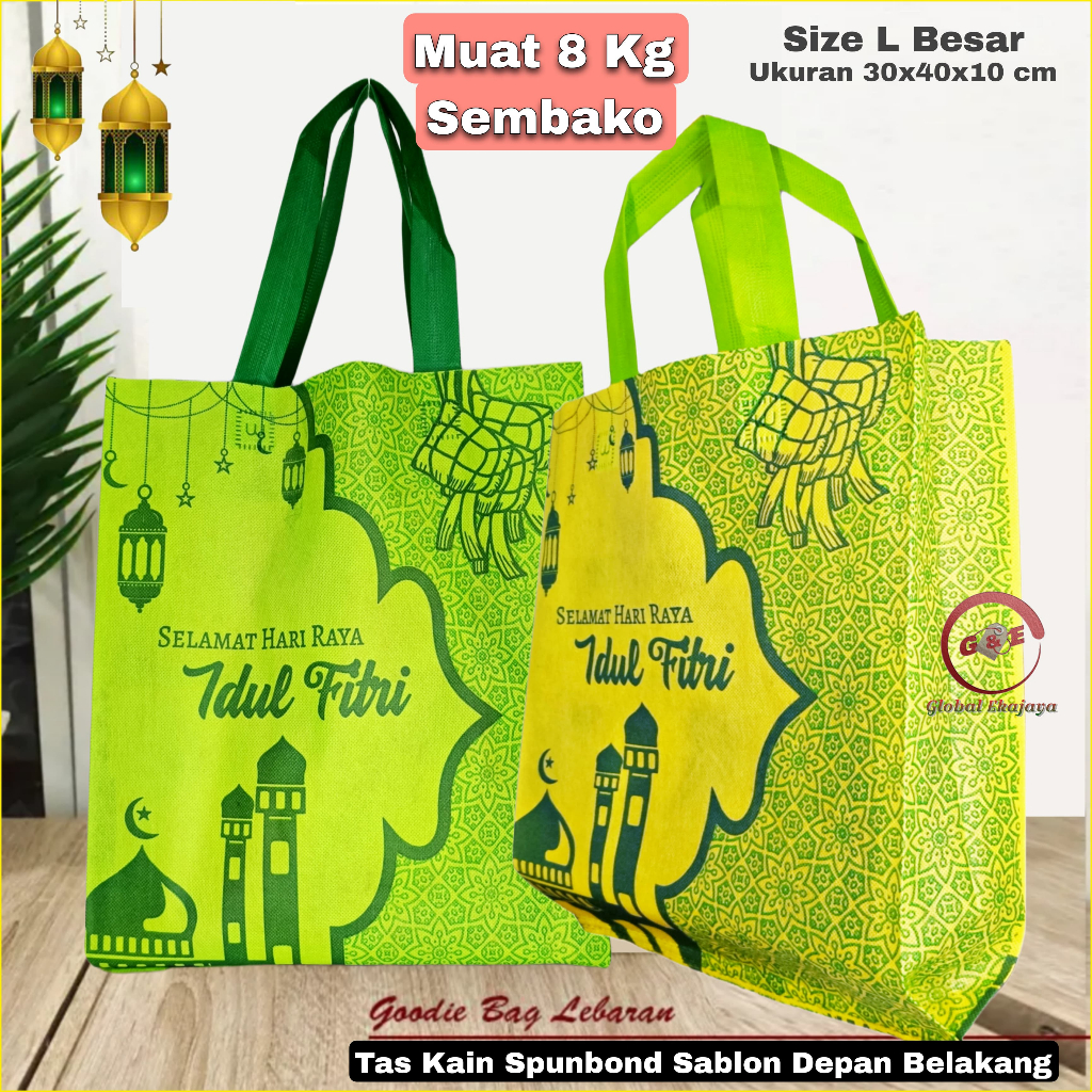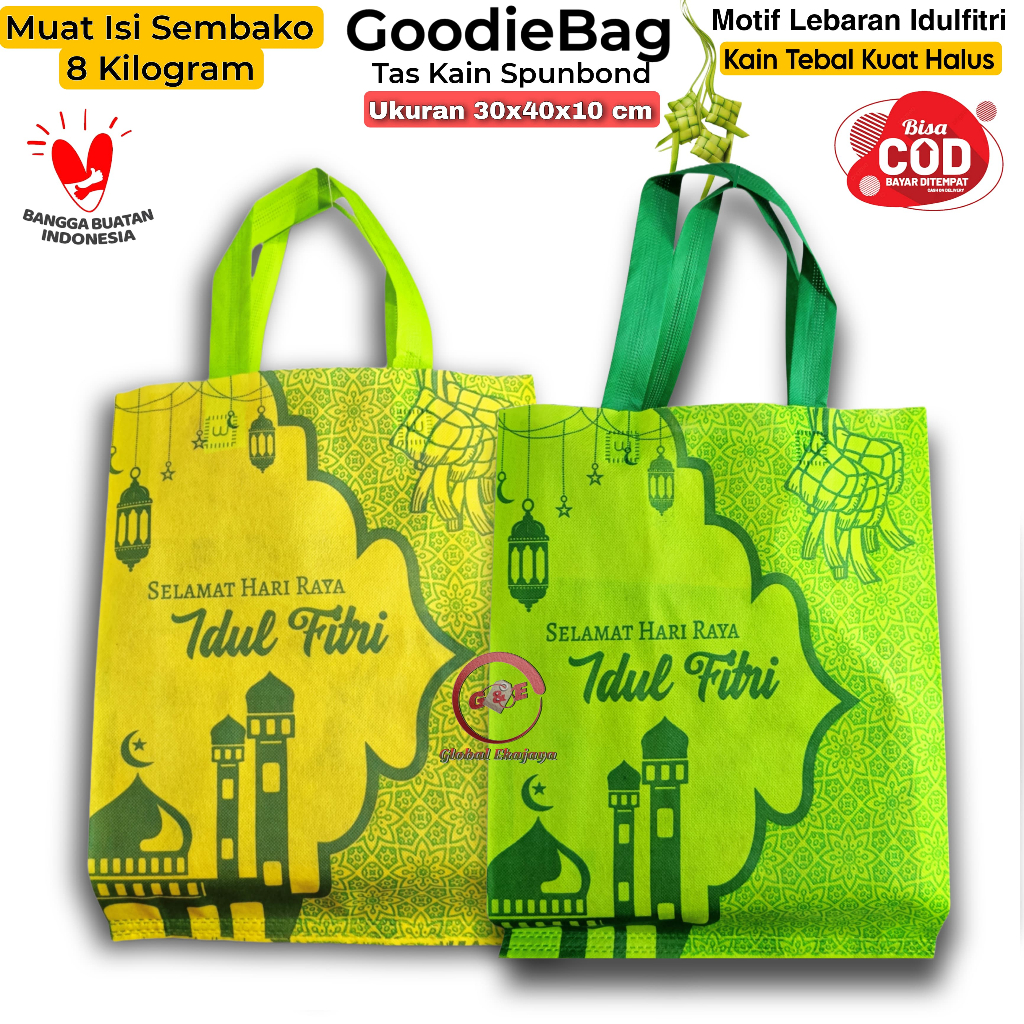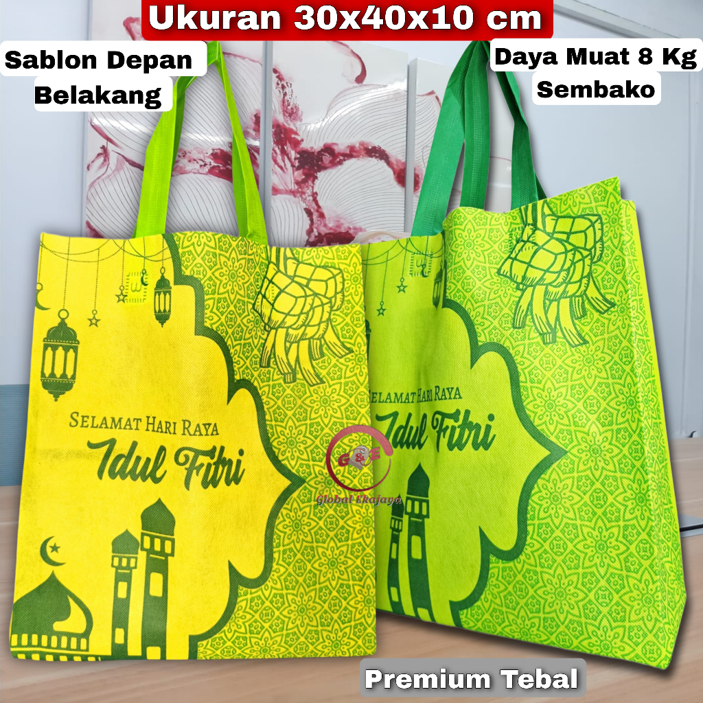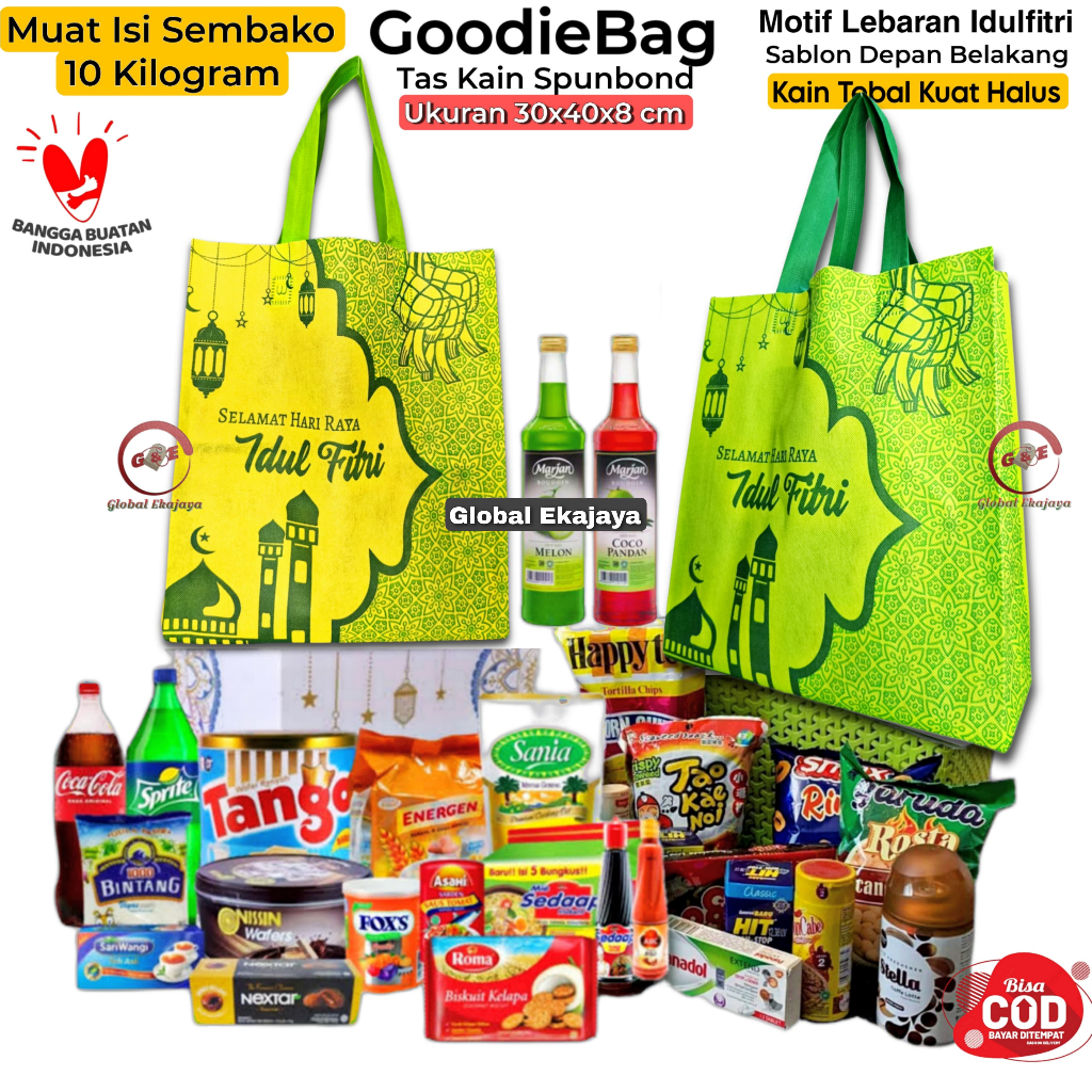 Isi 12 Pcs Tas Kain Lebaran Idul Fitri Ukuran 30x40x10 Goodiebag Kantong Totebag Hampers Parcel THR