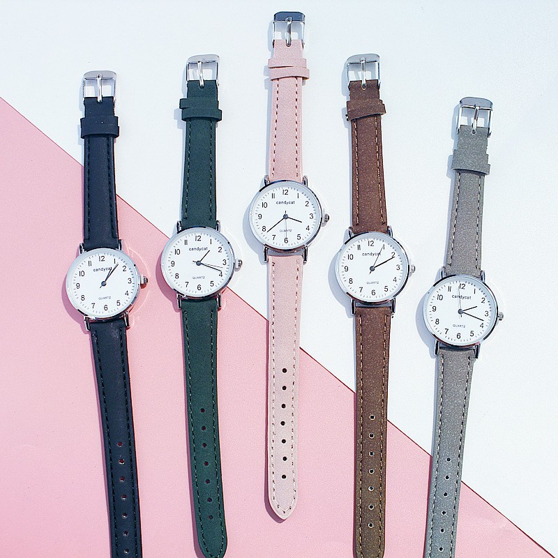 Jam Tangan Casual Gaya Retro CandyCat Untuk Wanita Strap PU