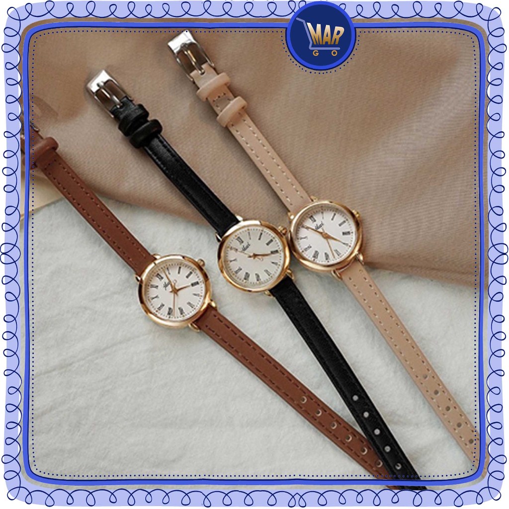Jam Tangan CASUAL Wanita Analog kecil tali kulit dial bulat