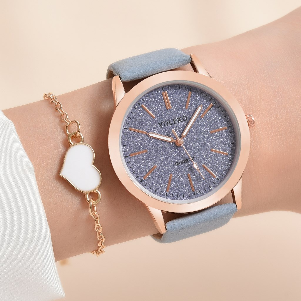 Beranda » Produk » Jam Tangan Kuarsa Wanita Bergaya Analog Sederhana Skala Sederhana Dial Bulat PU Tali Kulit Dengan Gelang
