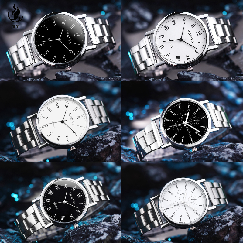 Jam Tangan Pria Simple Steel Band/Roman Digital Alloy Band Quartz Men’s Watches