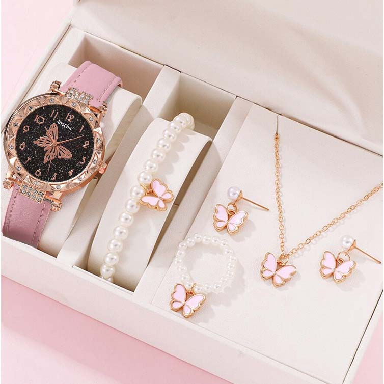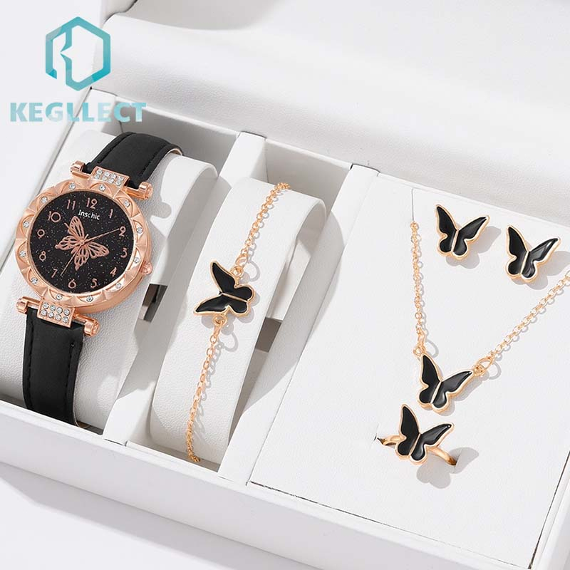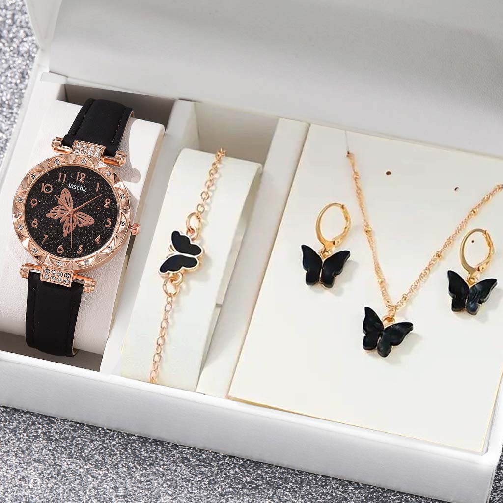 Beranda » Produk » Jam Tangan Wanita Baru Set Jam Tangan Berlian Kupu-Kupu + Gelang Fashion Jam Tangan Wanita Retro(No Box)