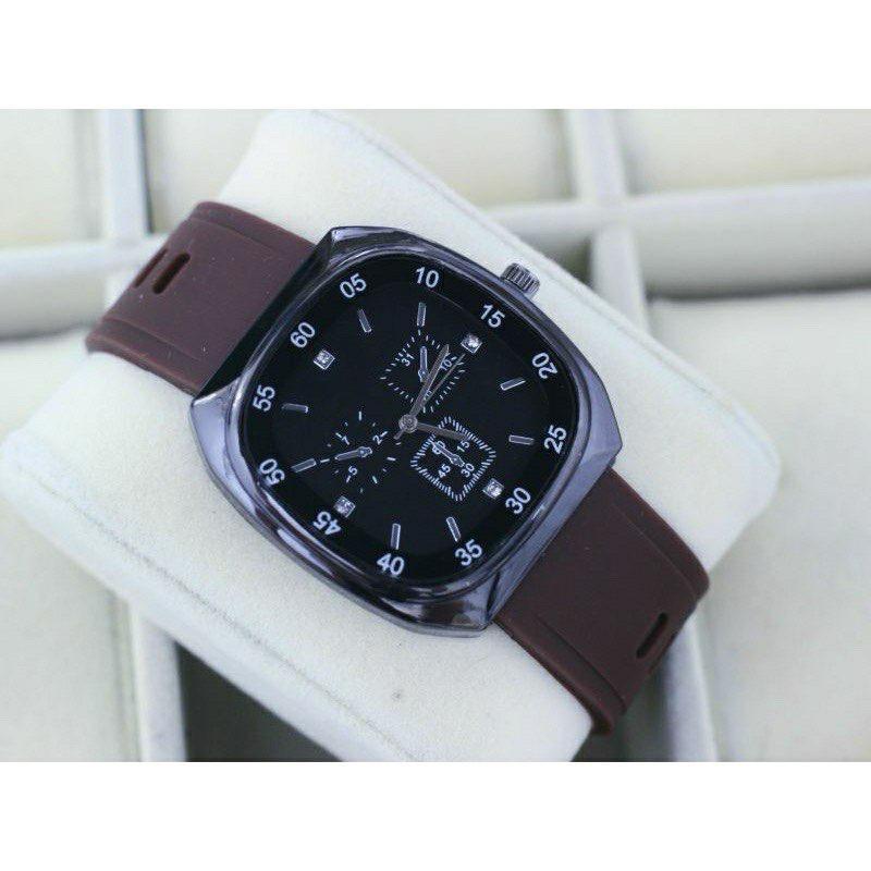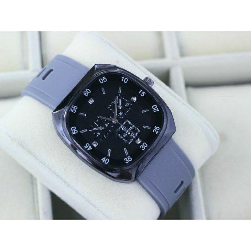 JAM TANGAN WANITA PRIA OVAL RUBBER ANALOG FASHION FREE GELANG