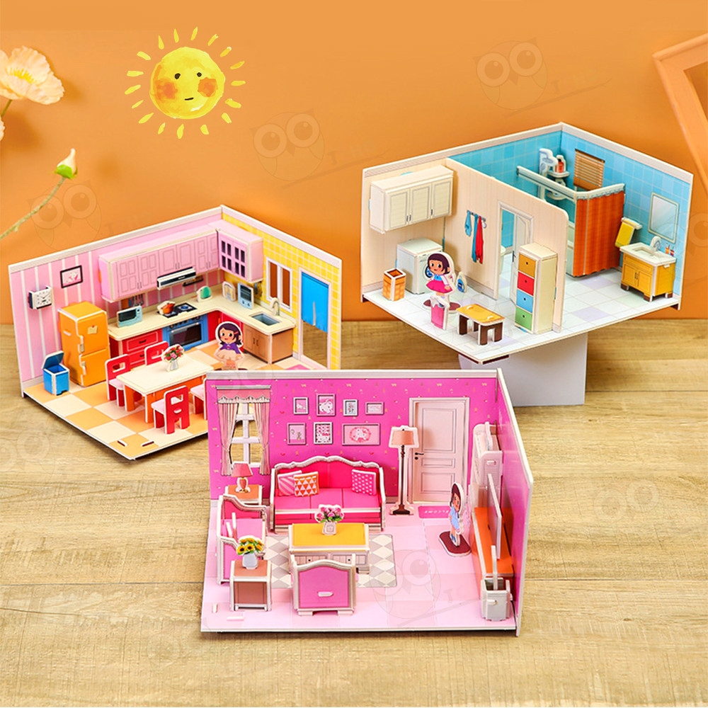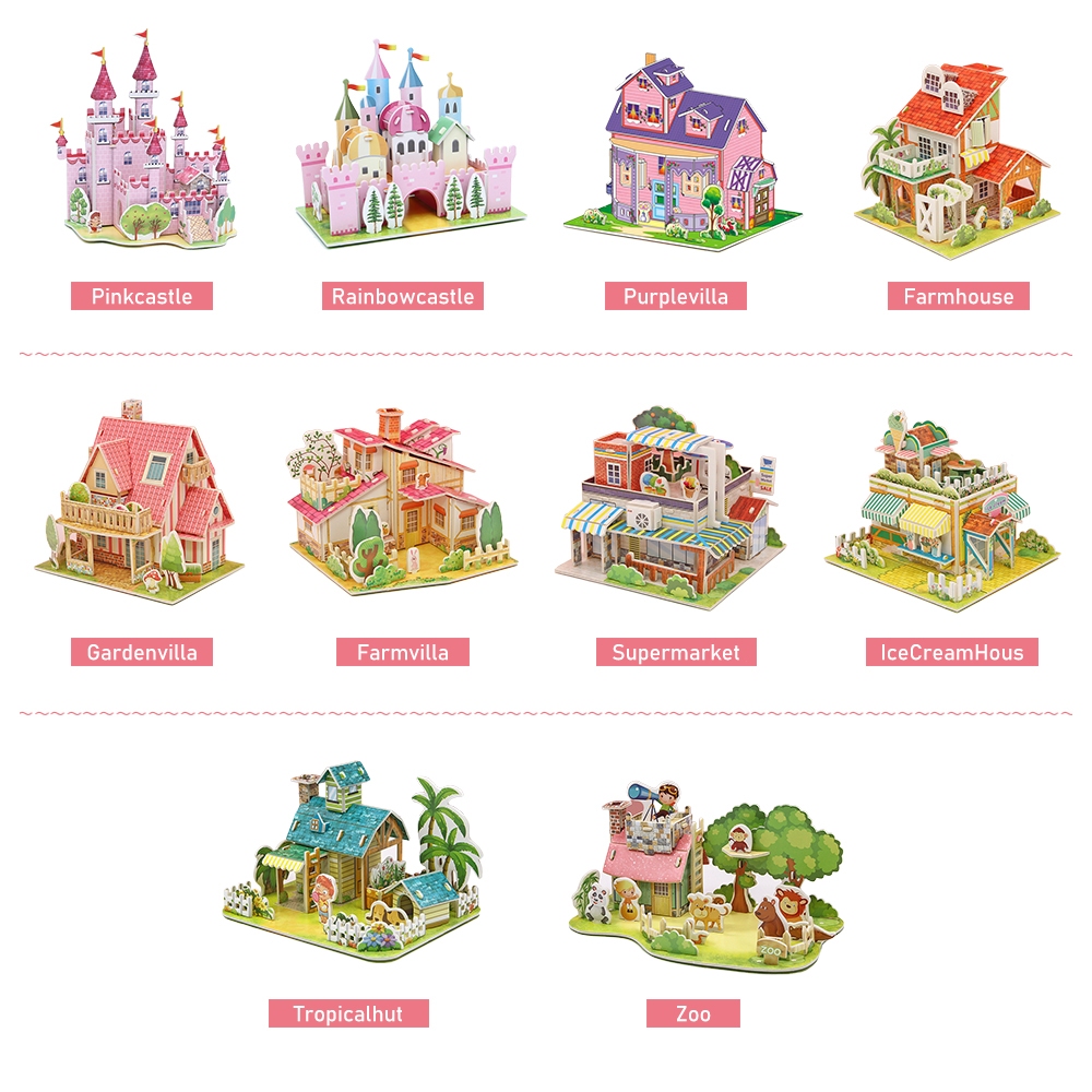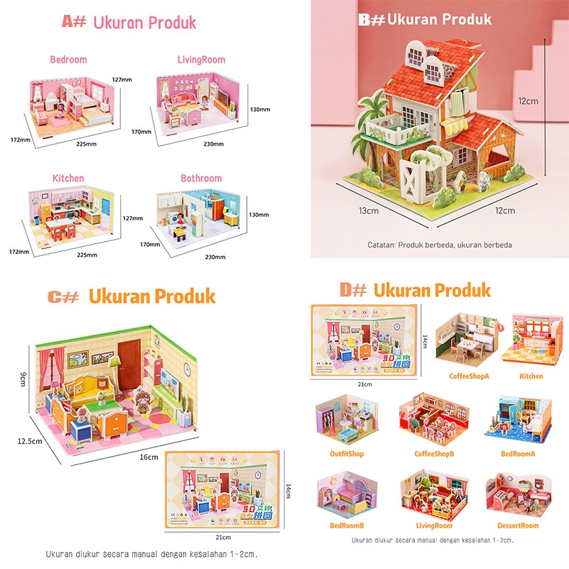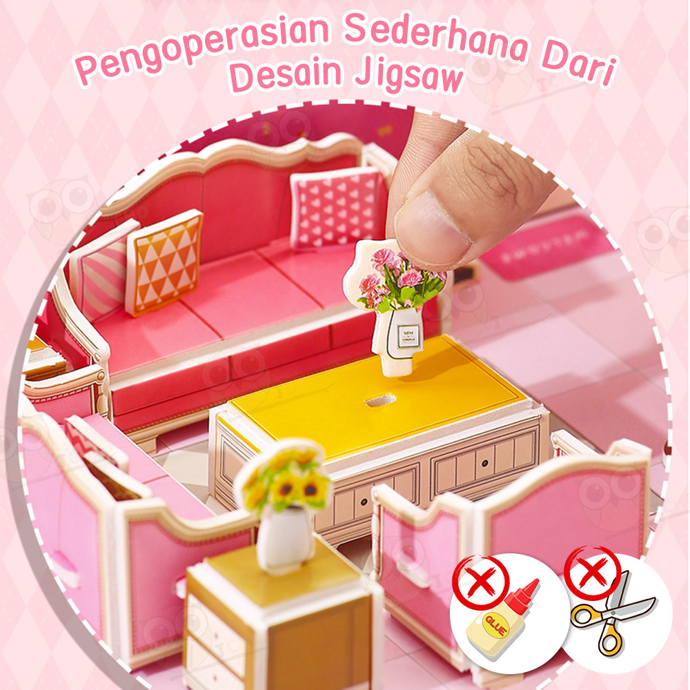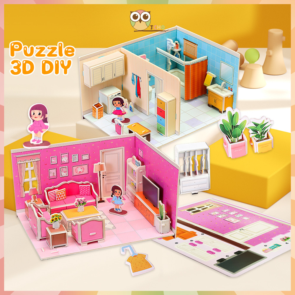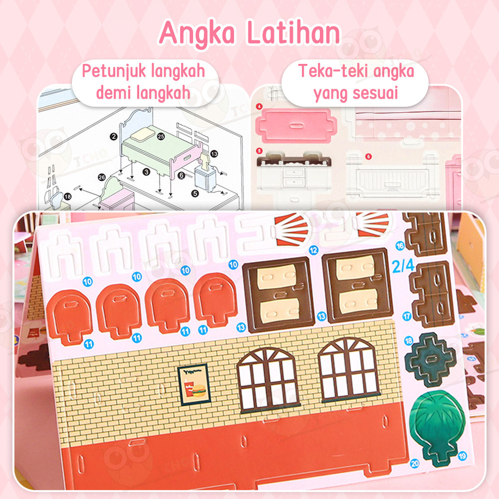 JCHO Ukuran Besar DIY Mainan Puzzle 3D Edukasi Anak 3D Jigsaw Puzzle Paper House Puzzle Anak