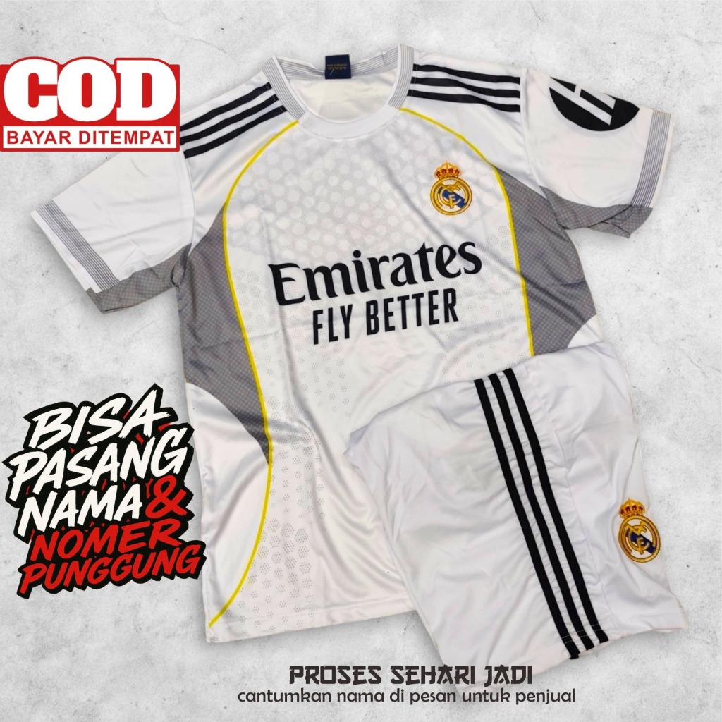 Beranda » Produk » Jersey R. M4drid Home Putih Musim 2025/2026 Terbaru Set Adem Bahan Hyget Serena Bisa Custom Nama COD