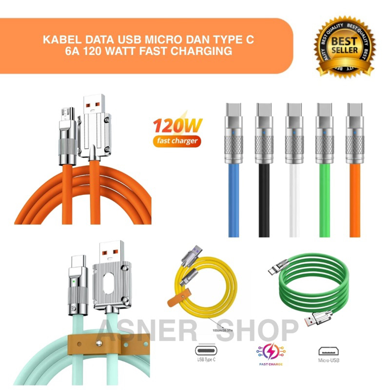 Kabel 120W 6A Fast Charging Super Charger usb Micro / Tipe C Gaming Cable Data Viral