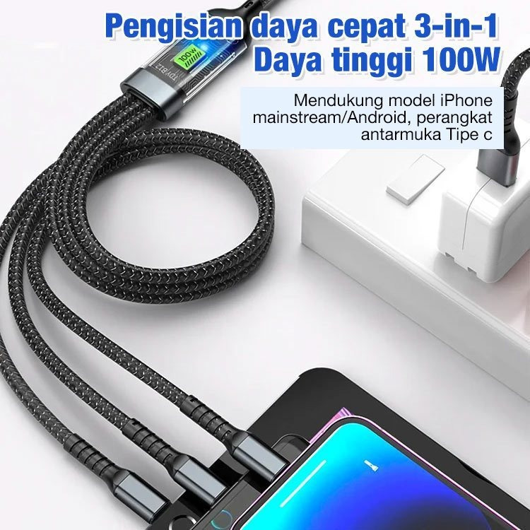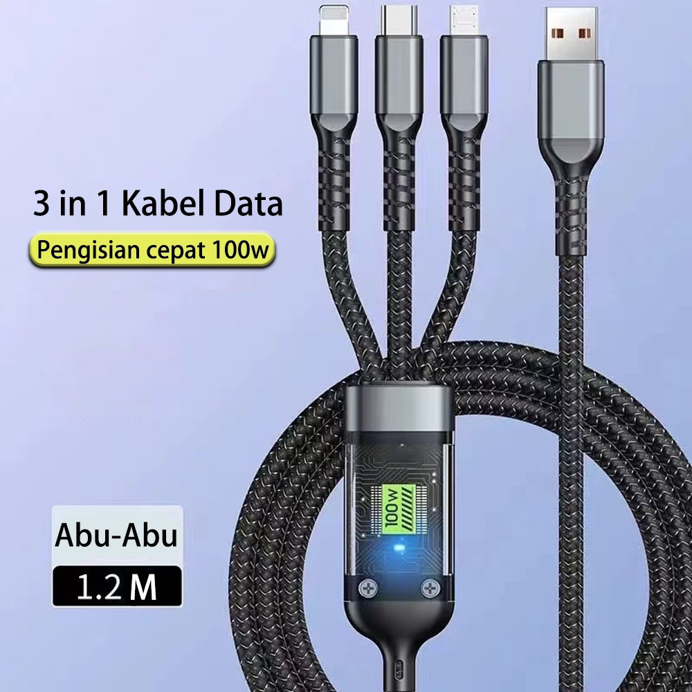 Kabel Data 3in1 Fast Charging 100W USB Micro, Type C, Lightning Best Quality