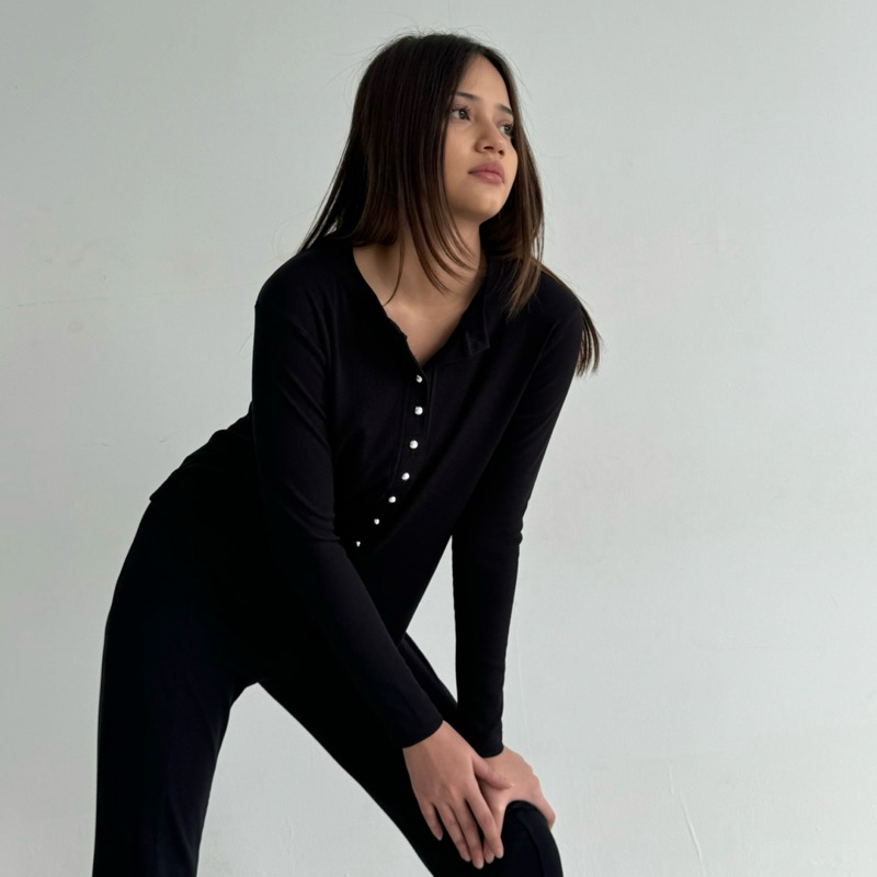 KAIA TOP | Atasan Knit Wanita Lengan Panjang Basic Korean Top Summer Baju Knit Kancing Rib Wanita Long Sleeve SOMA