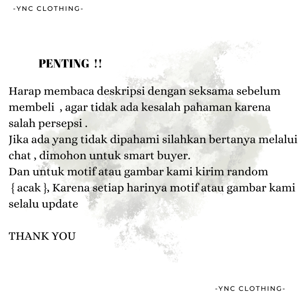 NOTE: Motif dan warna diacak No komplain jika soal motif atau warna Komplain diterima bila ada cacat produk ( harus di sertakan video pembukaan paket untuk pengajuan klaim )