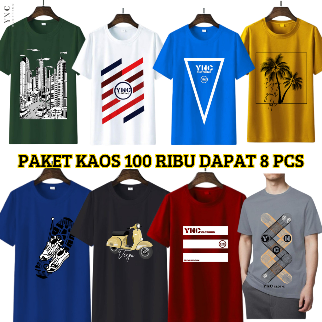 Kaos 100ribu dapat 8 Baju Dewasa Paket usaha distro tulisan Wanita Motif warna cerah dan gelap