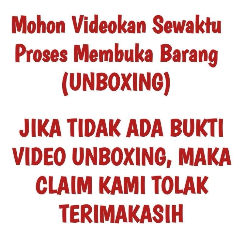 JANGAN LUPA VIDEO UNBOXING SAAT PESANAN DITERIMA DAN DIBUKA.