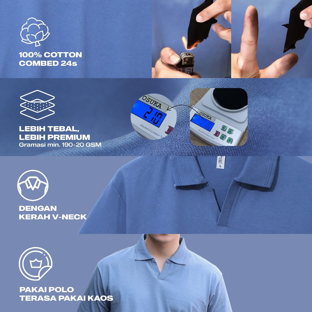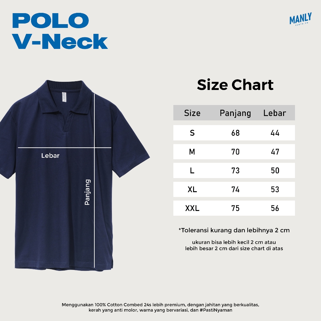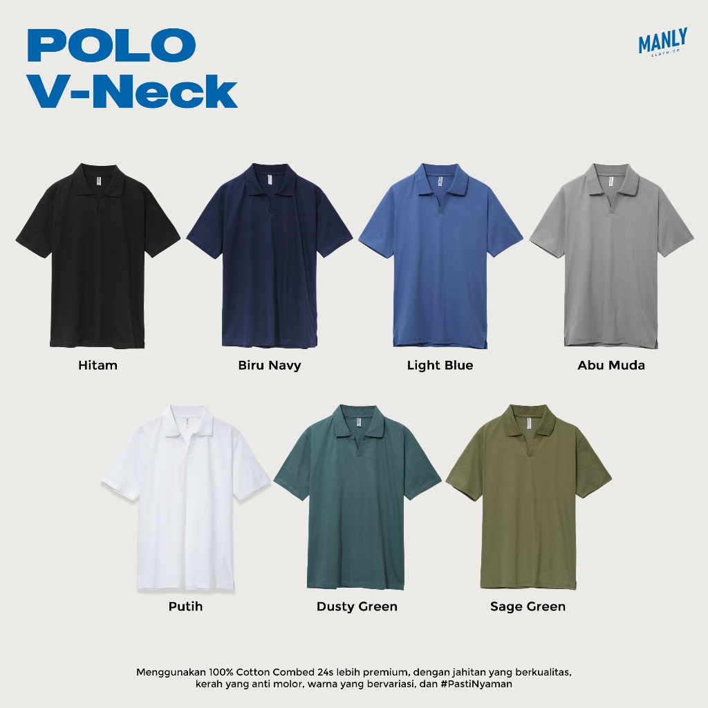 Polo V neck ini terbuat dari bahan 100% cotton combed 24s yang melewati proses bakar bulu, sehingga menghasilkan kenyamanan yang extra.