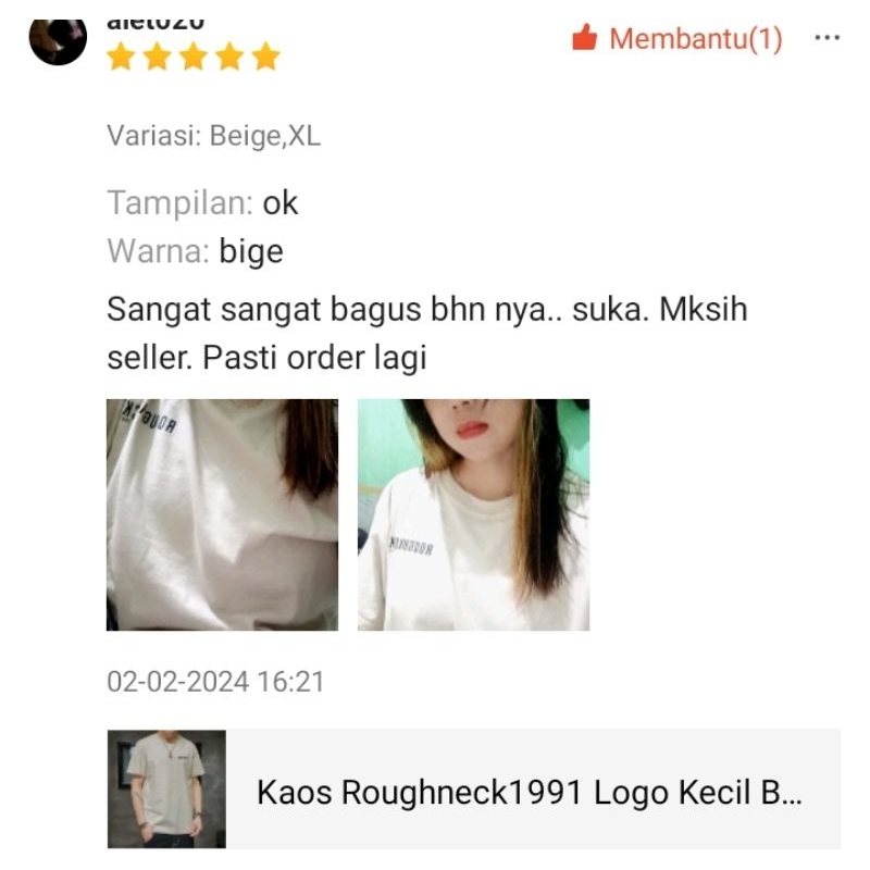 Untuk Model Wanita: Tinggi 168-170 cm, Berat 55 kg, Menggunakan Ukuran L