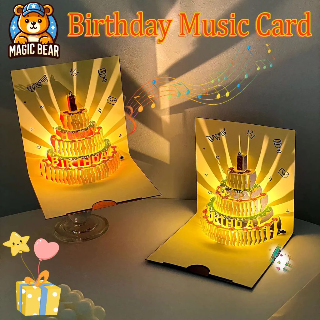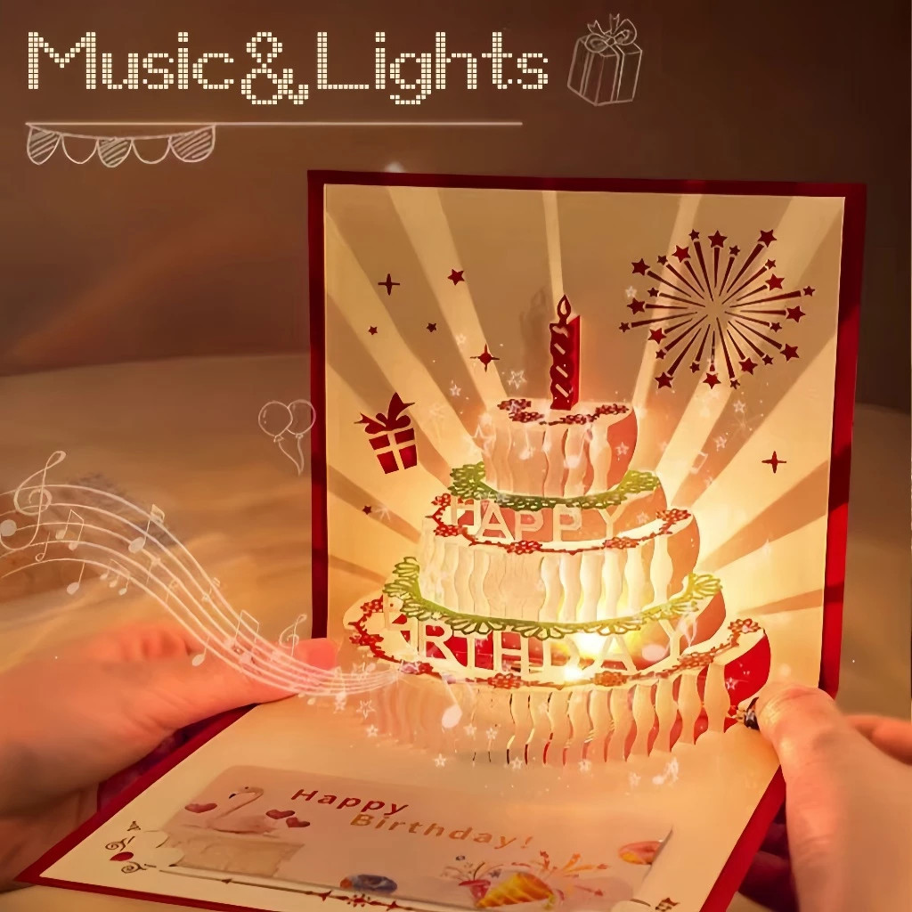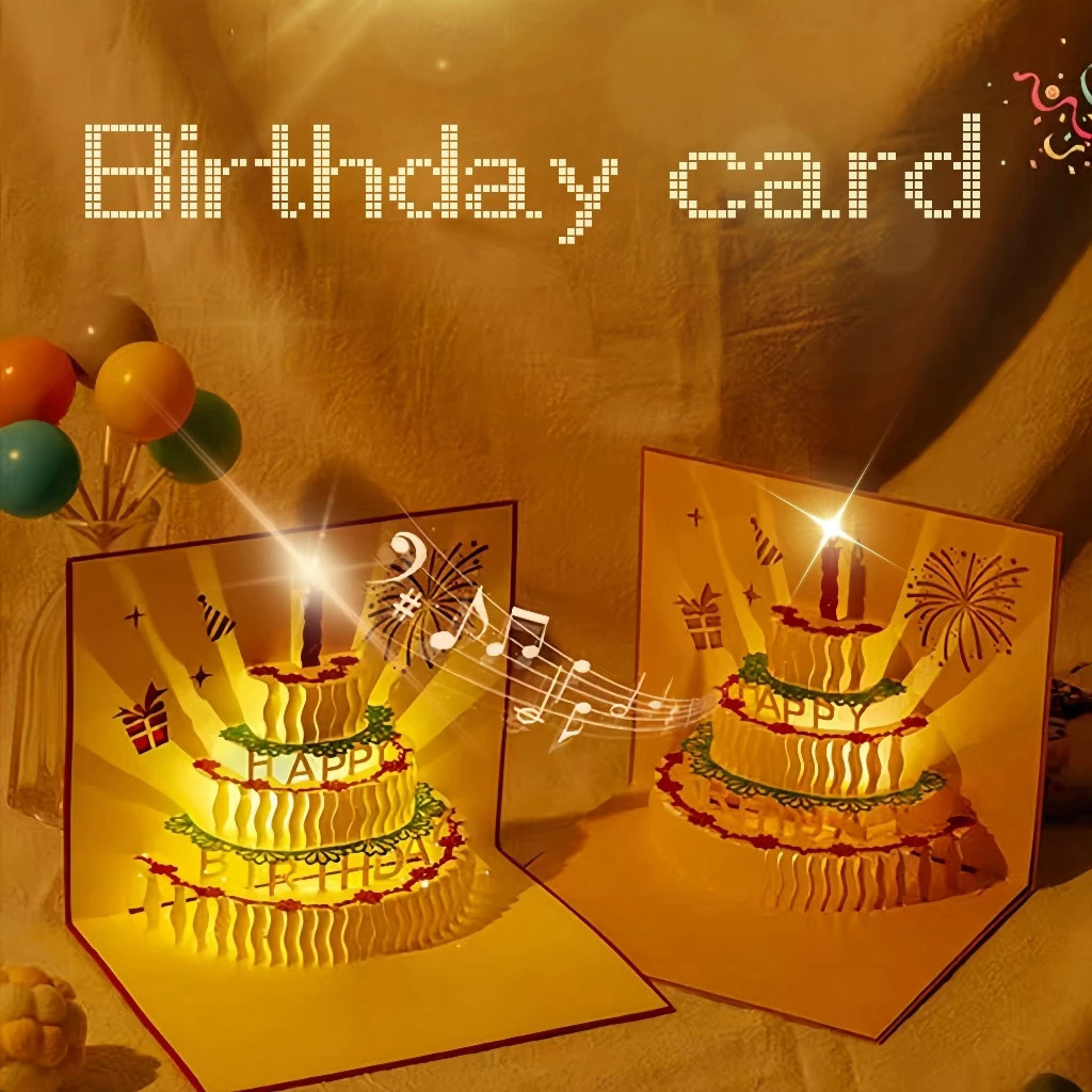 Kartu Ucapan Ulang Tahun 3D Kue Musik Lampu Musik Ulang Tahun Kartu Ucapan 3D untuk Hadiah Ulang Tahun