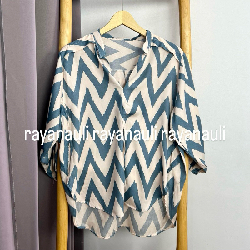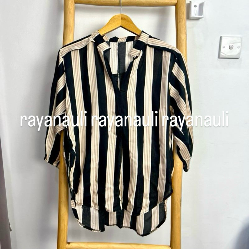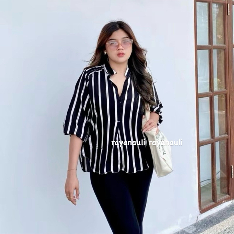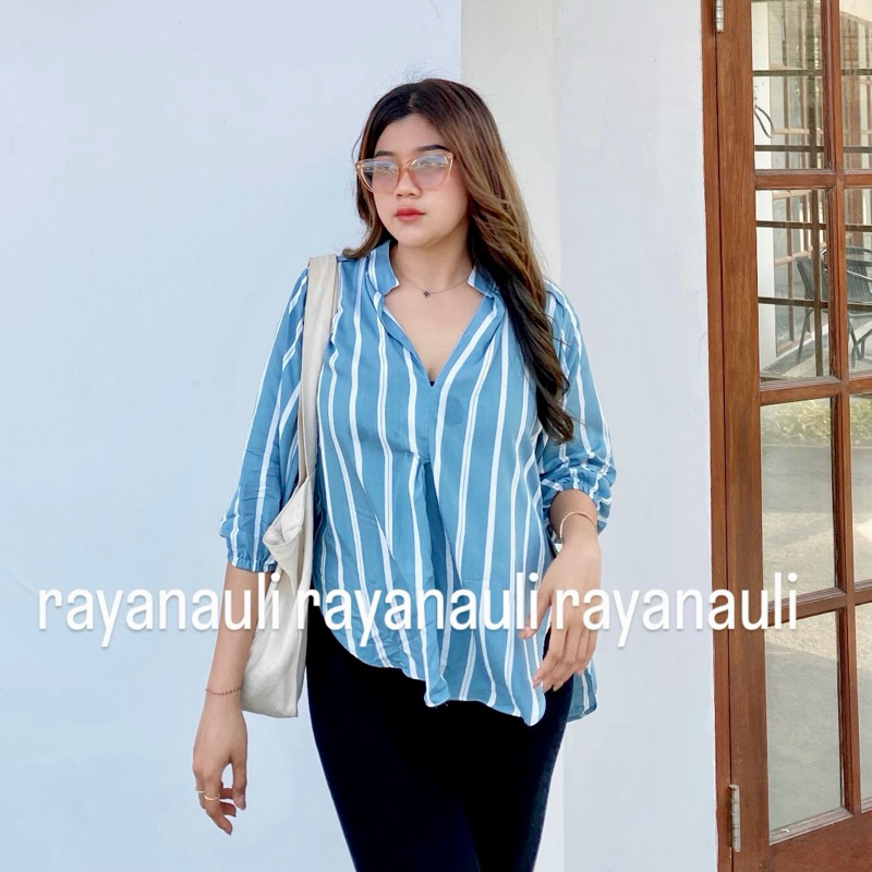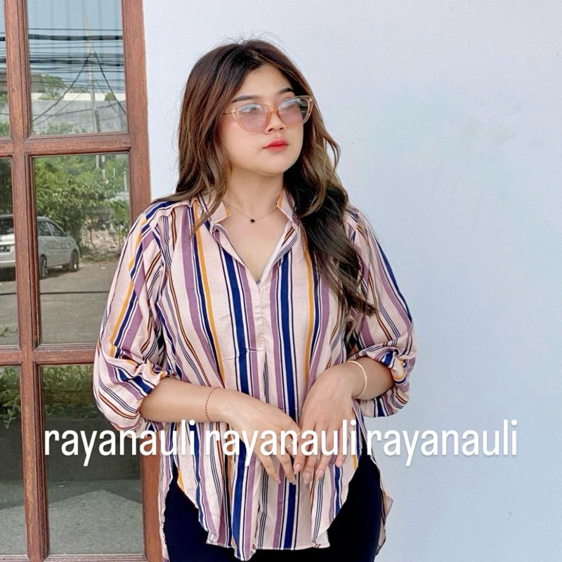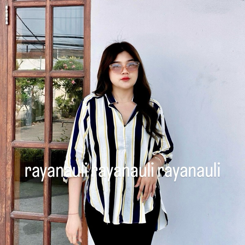 Kemeja Blouse Jumbo Strip Salur Wanita Rayon Viscose