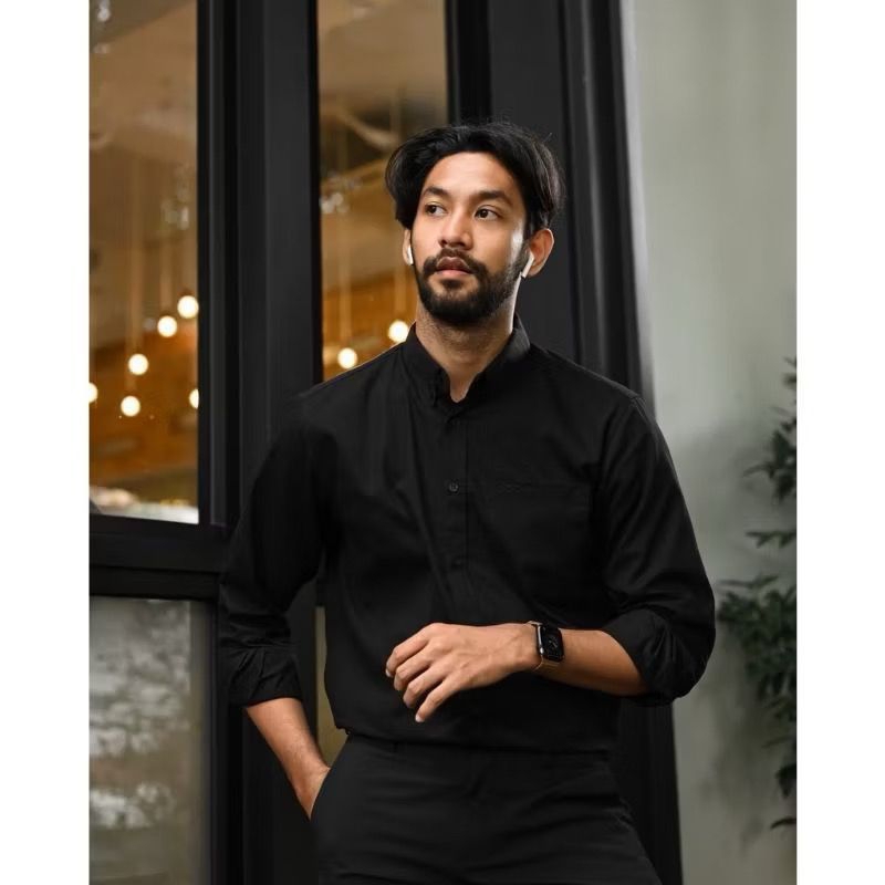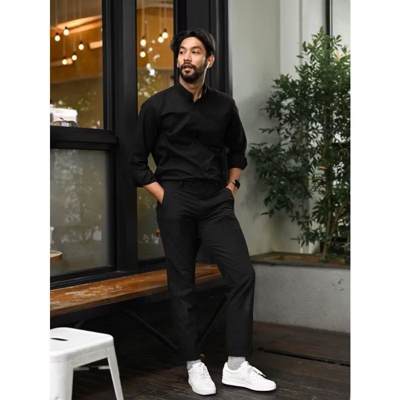 Kemeja Cowok polos lengan panjang slimfit pria kantor hitam navy putih