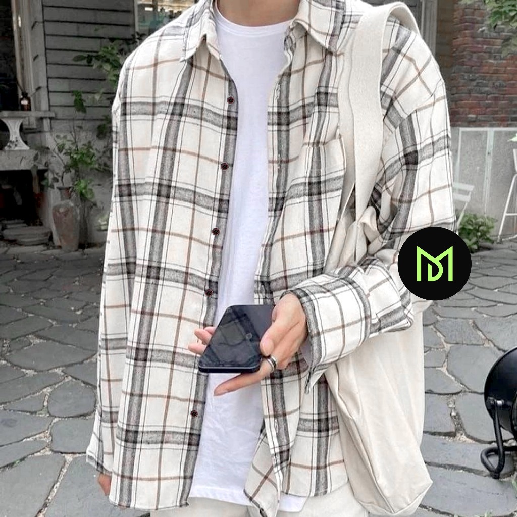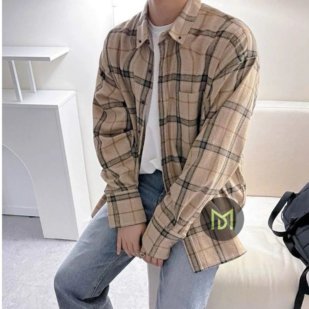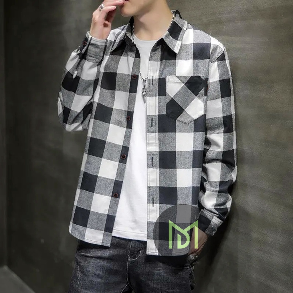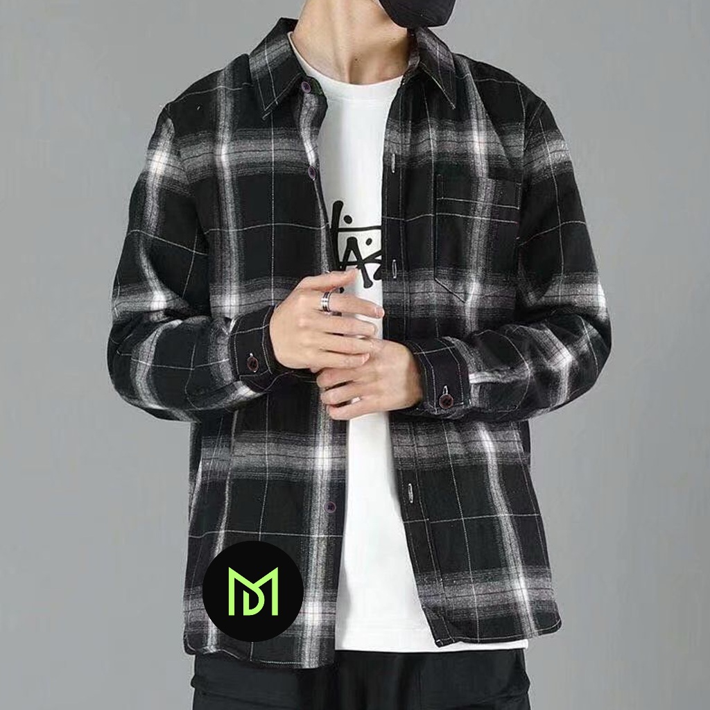 Kemeja Flanel pria wanita unisex flannel import Lengan Panjang MD Kemeja