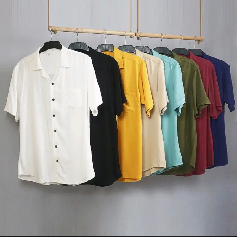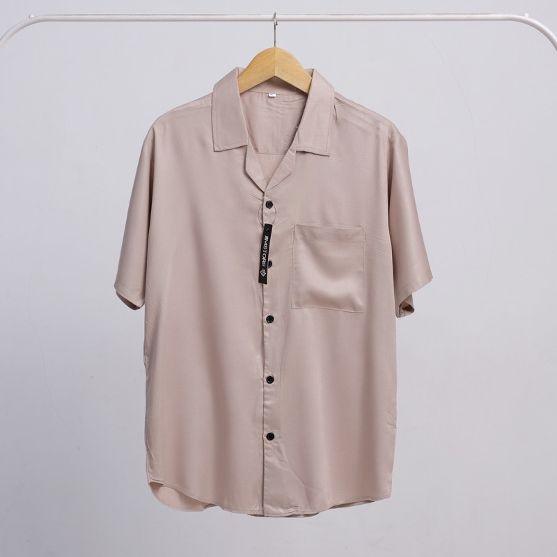 Kemeja Katun Rayon Polos Brown Lengan Pendek Pria Wanita